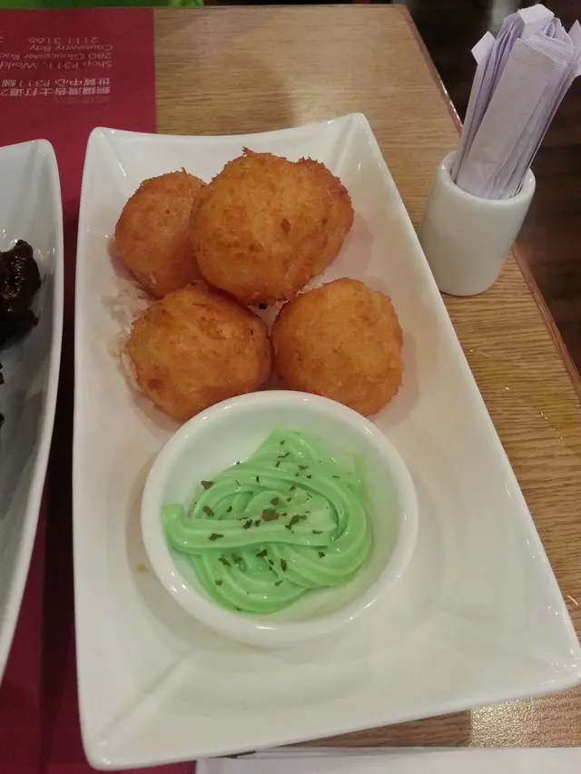 一直都想試, 見餐廳經理又好有禮貌咁企喺門口sell, 於是中咗入去叫咗個4人餐, 個餐好似$668定$688, 加一, 另要每人茶位$8, 但呢$8我覺得值, 侍應會不斷添水及倒茶, 個荔枝茶飲咗成晚都仲好有味, 清清地幾好飲~但呢度d侍應好得意, 分開識落單同埋專係傳菜及執嘢兩種, 你叫錯咗唔係落單果個就會要repeat再同落單果個講, 而佢地嘅服飾同埋外貌都唔係好大分別, 所以成晚試咗幾次要repeat order.4人餐食得好飽, 坊間有d 4人餐食好似for 3人份量咁, 但呢度好足, 實夠飽!湯可以4個人都揀4款唔同味, 我要咗肉骨茶(馬來西亞), 不過不失, 朋友要嘅好似係川貝雪梨湯, 清得嚟都好甜前菜 - 咖央蝦丸:裡面爆漿, 又彈牙, 好味!前菜 - 油炸鬼:都好味, 但由於佢釀落中間果舊嘅味道同蝦丸好似, 所以相對失色.主菜 - 海南雞:唔係差, 但我會覺得kitchen 65雞味香d及滑d, 但值得讚嘅係呢度4個人上兩sets汁料, 唔會點到尾聲冇晒味主菜 - 話梅豬腩肉:腩肉幾靚嘅, 肥瘦分布得幾平均, 亦有話梅甜甜地果陣味, 但肉質略嫌鞋咗d d主菜 - 咖喱雞翼(配薄餅):咁多味, 覺得呢味最一般, 雞翼冇乜味, 咖喱亦冇特別, 仲有跟餐果塊薄餅唔夠鬆軟每人配一碗飯, 轉油飯加$6/碗, 油飯唔算好油, 但應該可以做得再香d飲品, 轉特飲又係加$6/杯, 我飲咗香茅青檸梳打, 味道唔錯, 得意在佢係比一枝香茅好似攪攪棒咁, 有香味之餘又可用嚟篤篤吓, 唔錯, 但my friend就話似飲緊洗潔精, 可能呢陣味都係見人見志.查看更多