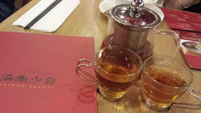 海南少爺位於銅鑼灣世貿中心,雖然成日經過卻一次也沒有幫襯過。整個餐廳的格局呈C字型,雖然窗戶可以看到海景,但裝潢偏向平民化。主打色用上鮮紅色,加上烏籠吊燈和牆上騰雲駕霧的山水畫,感覺很有中國色彩,不過另一邊牆身貼了幾尾藍色的大魚,可能店方想型造一山一水的感覺,不過感覺不太搭調。台內提供的是荔枝紅茶,聞起來卻比較像龍眼香。茶錢$6/位,可無限添飲。香茅青檸梳打算是敗筆,雖然看見杯中插着一枝香茅,不過飲品本身並無香茅味。另外,梳打稍嫌無氣,當中的青檸,味道亦稍嫌人工化,如果換上新鮮青檸,味道應該會更清新。海南雞餐既然是招牌菜,那就無得輸。$88一個套餐,有菜,有飯,有雞,有湯,另加$8可轉為雞脾,我卻鐘情於雞胸。雖然是雞胸,但沒半點鞋口感,加上無骨,吃起來非常方便。雞肉不但嫩滑,而且雞味異常濃郁。一般吃白切腛都會飛走雞皮不吃,但這兒的雞皮薄薄滑滑,冰冰涼涼,很易入囗,亦沒半點油腻感。白灼黃芽白,只是水煮,味道淡淡的,半點油盬也沒有,更不用說味精。白色的雞湯雞味濃郁,只有杞子,但很鮮甜,感覺很健康。飯的賣相看起來雖然乾巴巴的,不太吸引,也沒有一般海南雞飯的油亮,但原來飯身已經吸收雞汁和椰香,所以飯身呈淡啡色。如果吃到口乾,又可立刻拿起茶杯喝囗湯,非常方便。海鮮喇沙可選瀨粉或米粉,材料方面很豐富,包括蝦、帶子、蛋、豆卜、蟹柳、魚片、魷魚仔和芽菜。喇沙湯底比一般的稀身和淡口,椰汁味亦不算很濃,帶點辣和香草味。瀨粉是粗身圓條形的粉條,口感並非特別爽,但因為吸引了湯的辣,所以很惹味。剛剛在鵝頸橋街市買了一個九磅的榴槤,看見餐牌上介紹着D24榴蓮布丁,還是忍不住點了一客。榴槤布丁的香氣很強烈,布丁的質感挺結實,入口嚐到的先是榴蓮香,布丁裡頭有絲絲榴蓮肉,伴隨而來的還有一陣奶香和濃濃的奶油味。布丁頂層有一堆榴蓮蓉,雖然有些筋,不夠滑溜,不過整體還可以,如果可以去掉那怪怪的奶油味,應該會更出色。查看更多