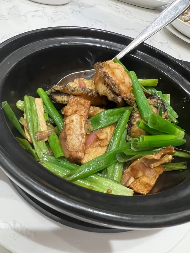 鮑魚除了清蒸鹽焗外,這個薑蔥炆鮑魚也是第一次見,鮑魚有海鮮味,再加上韭菜的惹味,都是送飯惹味之選。