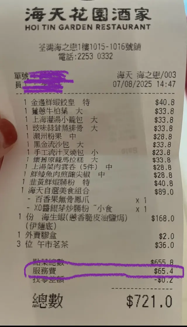 海天花園酒家 (HOI TIN GARDEN RESTAURANT)地點:荃灣西站海之戀商場1樓人均消費:約 $80-$100 (午市點心)推薦指數:★★★★☆海天花園酒家位於荃灣西站上蓋的「海之戀」商場內,地理位置極為優越。從地鐵站C出口出來,步行僅需一分鐘即可到達,對於想在九龍西或新界區尋找優質飲茶地點的食客來說,交通便利性無可挑剔。這家酒家最大的賣點,毫無疑問是其罕有的海景用餐環境。雖然酒家正門的裝潢風格較為傳統,但只要走進餐廳內部,靠窗的座位便能將開闊的海景盡收眼底。在享受「一盅兩件」的同時,還能欣賞海天一色的美景,確實是城市中難得的享受,也難怪窗邊位置經常一位難求。在茶品方面,酒家展現了細緻的一面。我們點選了普洱,茶水溫和順滑,毫無澀味,茶底清澈。搭配的茶具是典雅的西式骨瓷茶杯,提升了整體的用餐質感和儀式感。這次午市我們點了四款點心,包括:潮州粉果(中點)、手工叉燒包(小點)、上湯菜肉雲吞(中點)以及手磨紅米銀羅腸粉(特點)。點心評價:1. 手磨紅米銀羅腸粉 ($40.8):外皮呈現亮麗的紅色,口感軟糯且富有米香。內餡包裹著酥脆的網皮和鮮蝦,層次豐富。這是四款中味道最為出色的一道。2. 潮州粉果 ($28.8):皮薄而透明,內餡豐富,調味適中,沒有過多的油膩感,保持了潮州粉果應有的清爽。3. 手工叉燒包 ($23.8):包身鬆軟,叉燒餡甜度合宜,份量適中。4. 上湯菜肉雲吞 ($28.8):*雲吞皮滑肉嫩,湯頭清甜。整體而言,海天花園酒家的點心製作水準穩定,最大的優點是烹調手法清爽,不油膩,調味亦適中,不會過鹹或過甜。但如您所說,部分點心的內料份量確實略嫌保守,若能更為飽滿,口感會更上一層樓。價格與服務:本次兩人午市消費,包括四款點心及兩位茶芥($24.0),點菜總數為 $146.2,加上服務費 $14.6,總數為 $161.0。以一間擁有海景、環境舒適且服務周到的酒家來說,這個價格相當合理,性價比高。除了點心外,酒家午市也提供特色套餐,例如$228的套餐包括了班片炒河、鮑汁鳳爪及鴨血等菜式,另有$89兩款小吃前菜的優惠,選擇多樣。總結來說,海天花園酒家不僅提供了一個優雅舒適、坐擁海景的飲茶環境,其點心品質也保持在不錯的水準。無論是家庭聚餐還是朋友小聚,都是一個值得推薦的選擇。#荃灣美食 #海之戀 #海景飲茶 #港式點心 #紅米腸 #潮州粉果 #優雅茶具 #高性價比 #香港飲茶**…查看更多