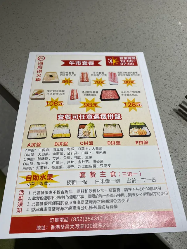 失望至极的一次体验1. **环境吵闹到崩溃:** 整个餐厅吵杂程度堪比街市!最离谱的是,我们座位附近至少有**十几个小朋友**在疯狂尖叫、奔跑追逐,音量之大让人完全无法交谈,带住降噪耳机都冇作用,甚至感到头痛烦躁。这绝对不是正常的用餐环境应有的噪音水平。2. **店员服务严重失职:** 最让人无法接受的是**店员的处理态度(或说根本没有处理)**!我们多次向经过的店员反映小孩过度喧哗的问题,希望他们能稍微劝喻家长或管理一下秩序。然而,店员只是点点头,嘴上说「好的好的」,**转身就没有任何实际行动**!小朋友的喧哗奔跑完全没有改善。3. **消极应对,拒绝协助:结账我们向门口黑衫同事反映情况,他只是点头回应,没有其他表示,连基本话会改善都没有,连表面功夫都不做,留左意见书,他表示会回复也没有回复,这应该是全港最差的海底捞查看更多