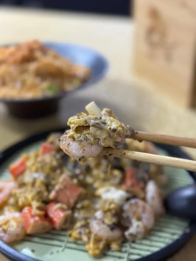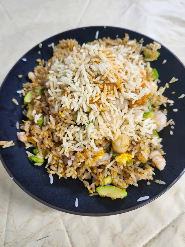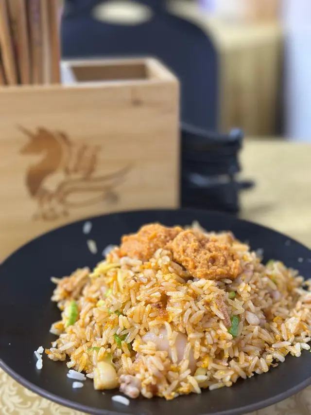 秘製蟹黃醬海皇炒飯$58加脆米$20