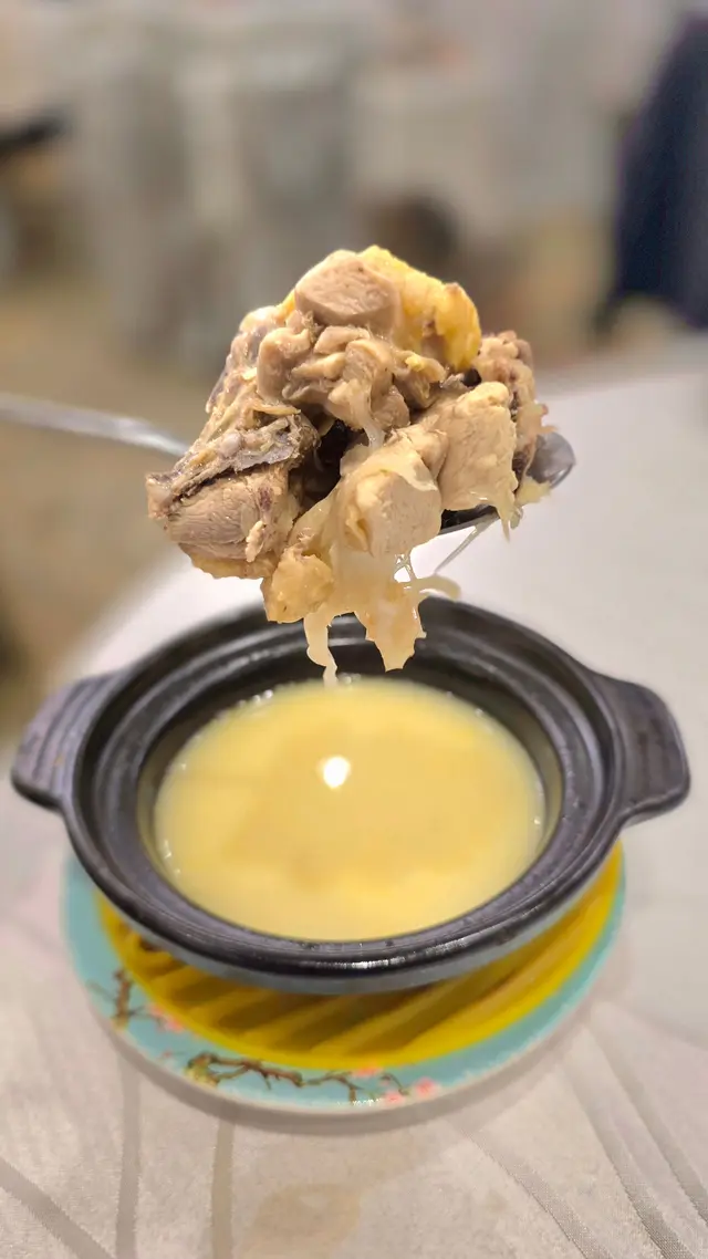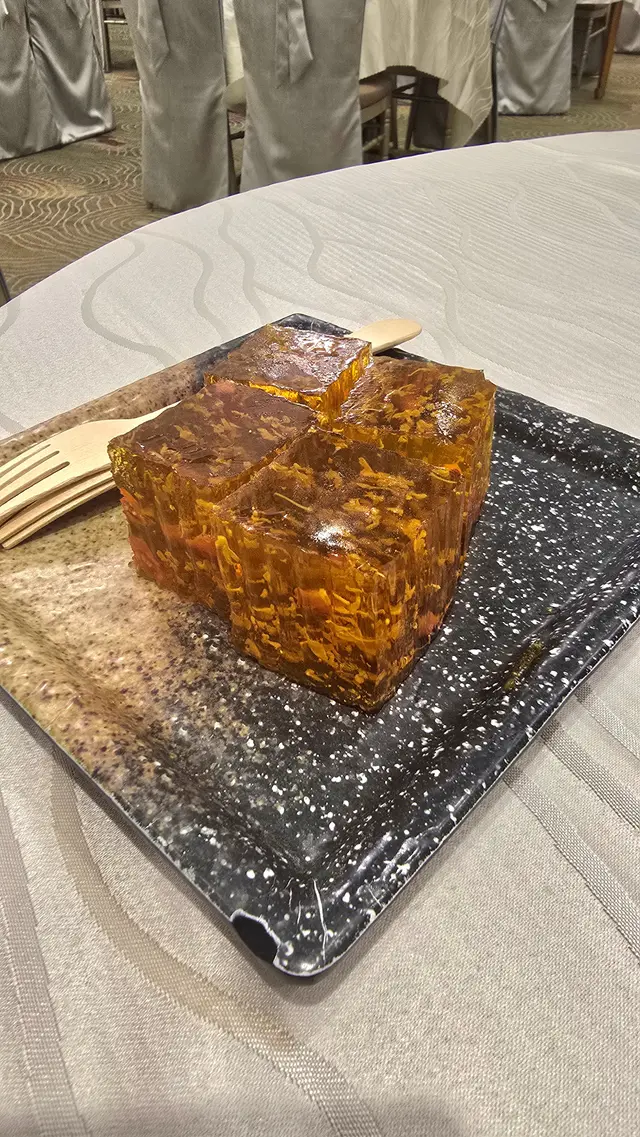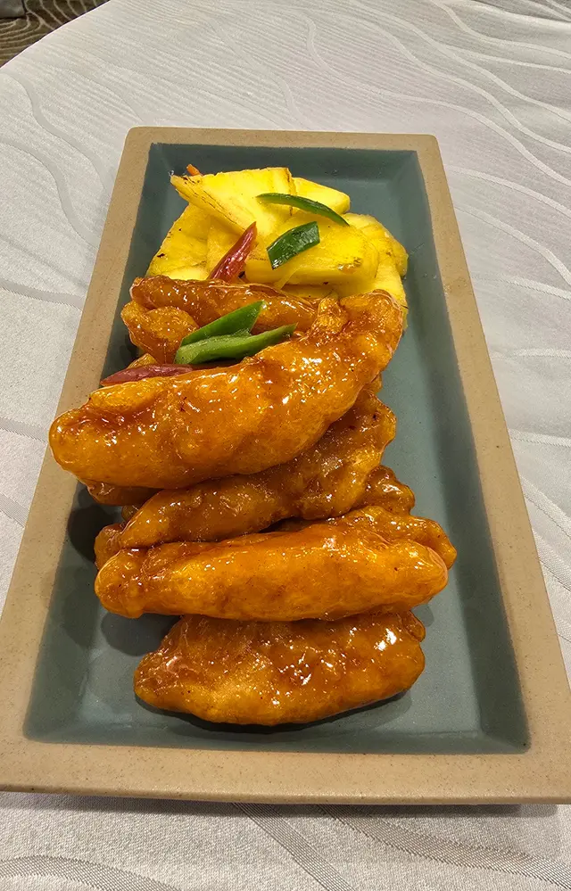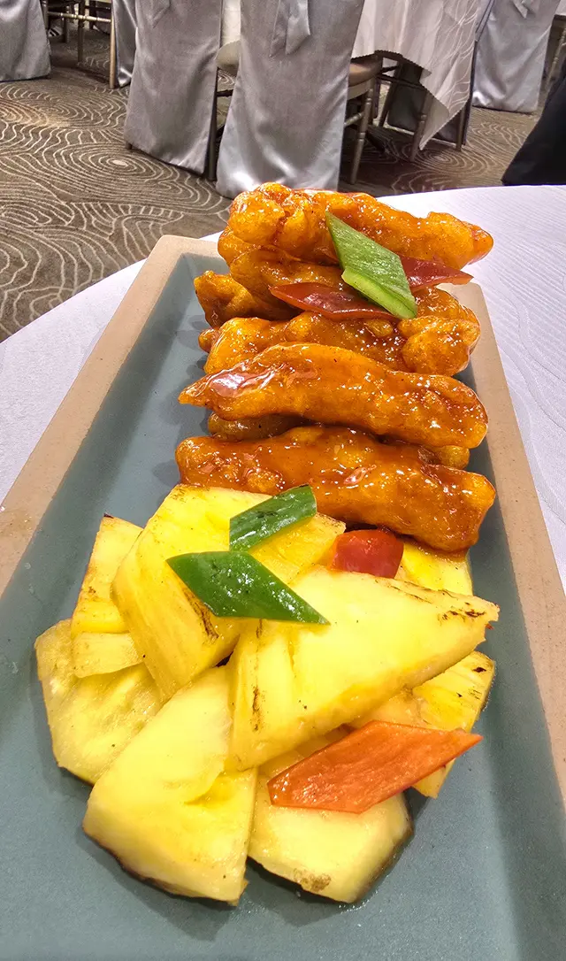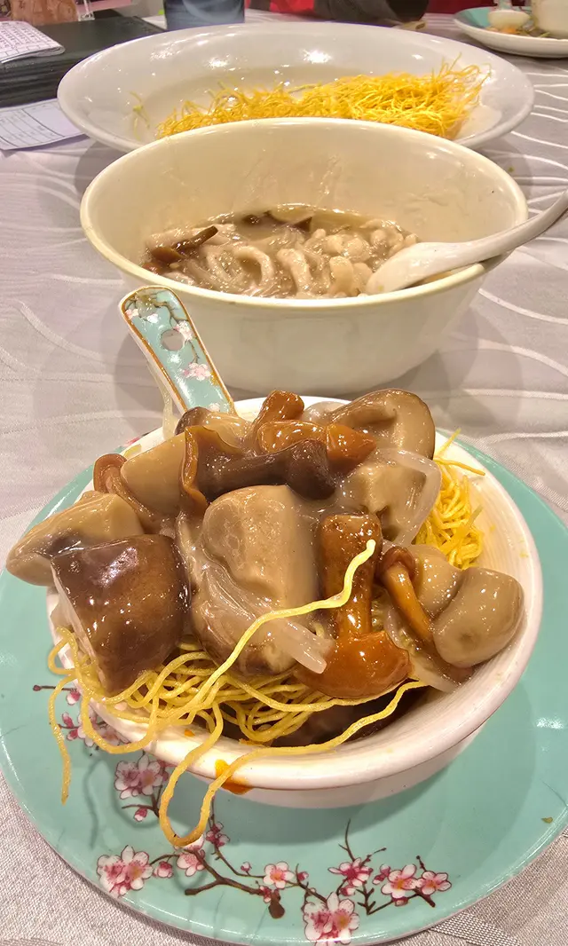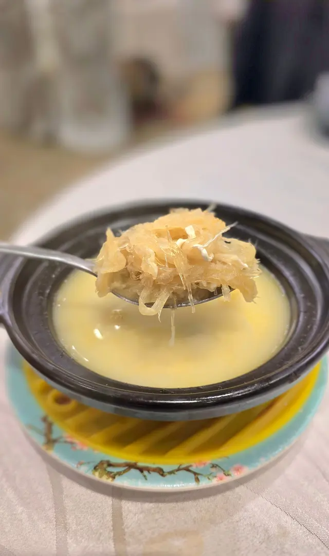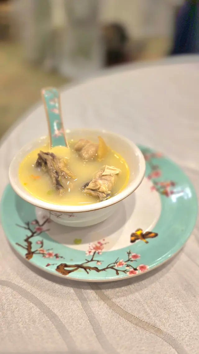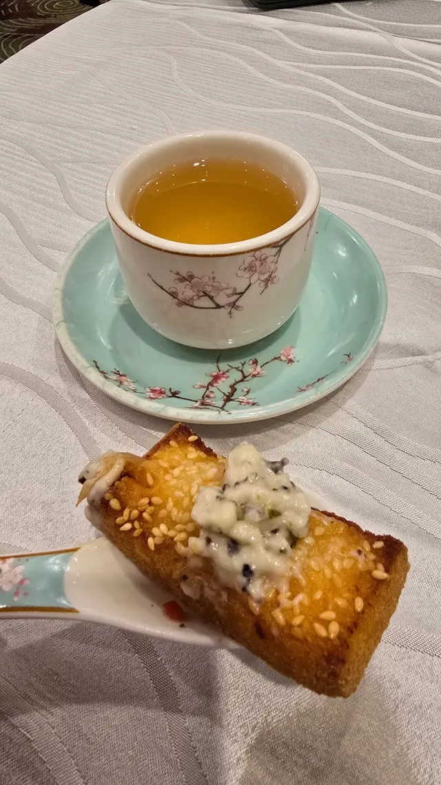 今晚家庭飯聚選擇合心意的中菜。松露蝦多士~經典的蝦多士結合香氣濃郁的黑松露醬,經典創意。陳醋海蜇花~陳醋拌海蜇花,口感清新、清爽,而且還具有清熱潤腸作用。宮延濃雞湯煲仔翅~濃雞湯味道鮮香濃郁,鮮味無比,加上魚翅入口腍滑,含有豐富骨膠原成分,滋補養顏。 鮮果拔絲咕嚕~咬落薄薄的脆醬,瞬間發出清晰聲響,美味鮮嫩的豚肉掛起一絲絲的糖醬,形成拉絲的美麗畫面,視覺、聽視與口福齊收。脆香金沙魷魚鬚~從昔日酥炸鮮魷到金沙魷魚鬚,沾裹上滿滿的金沙醬,讓人齒頰留香,廚師的心思功不可抹。銀芽肉絲煎脆麵~很高興煎麵不油膩,麵條香脆中仍保留麵質柔軟口感,很喜歡多款菇菌代替韭黃,因為我不喜歡吃韭黃,肉絲腍滑,湯芡濃稠度也剛好。 桂花杞子糕~(免費奉客)這道甜點帶有桂花的香氣,及杞子的清甜…查看更多