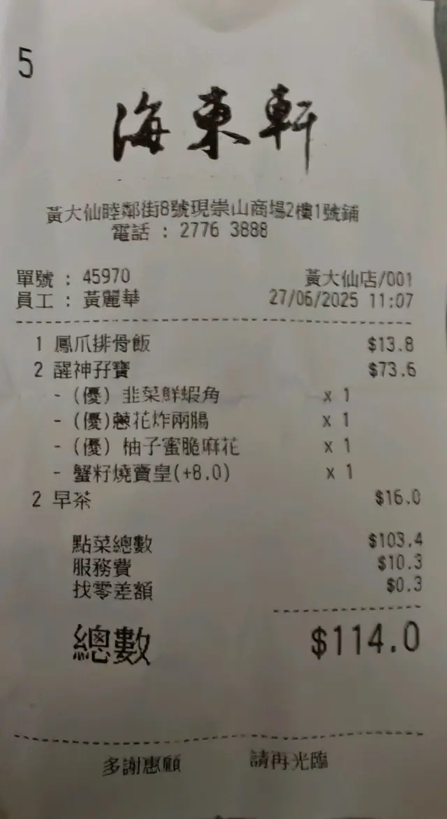 海東軒 (黄大仙) 网址: https://s.openrice.com/QrLS0dPGD00 地址: 香港黃大仙睦鄰街8號現崇山商場2樓201號舖 电话: +852 27763888