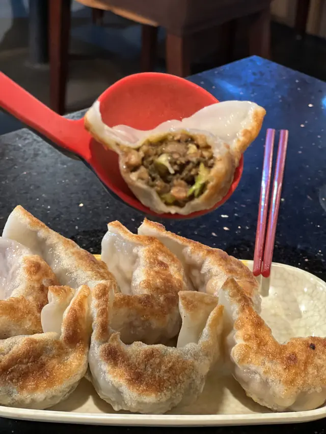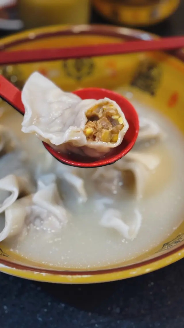 呢間餃子店中午都比較多人,餃子款式多,仲有煎餃但中午繁忙時間唔提供。餃子可配米線或者上海麵。叫咗碗 5隻香菇粟米餃配上海麵餃子外皮唔算太薄,唔會一夾就穿。入面餡料好足,粟米粒粒分明,咬落去有啲甜味。最欣賞係餃子煮得啱啱好,唔會過熟變腍。上海麵煙韌有咬口。湯底係花膠豬骨湯,飲落去舒服唔膩,見有唔少人都會好似我咁食曬啲麵有湯剩都會飲曬佢。食完碗麵都唔會覺得口乾,所以佢嘅湯應該真係無落味精。成碗麵唔會太重口味,有種家常感,啱晒唔想食得太濃味嘅日子。…查看更多