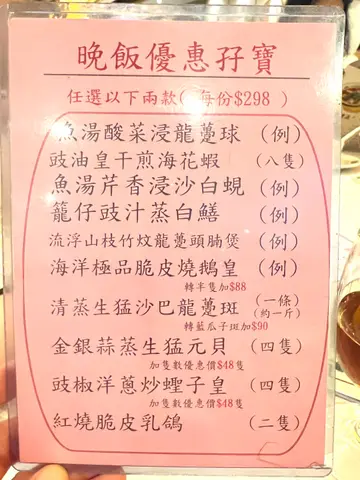 刚好朋友生日, 朋友最爱吃中菜 , 所以带他去海洋超级渔港晚餐, 中菜馆推出晚市套餐,十分抵食, 仲有指定的晚市优惠 , 加上环境舒适 ,交通方便, 与朋友聚餐一个好地方。晚市四人套餐 $788高汤白灼基围虾新鲜大只的基围虾,用高汤轻轻灼熟, 可以保留了海鲜的原汁原味,搭配一点酱油, 入口鲜甜弹牙 , 简单而滋味。锦绣烧味拼盘烧味拼盘有我最喜欢的豉油鸡、 烧鸭及叉烧,十分丰富,烧鸭很香脆 、叉烧及豉油鸡, 满满甜甜的酱油味道,让人一口接一口。碧绿油泡巨型龙趸球油泡后的巨型龙趸球,外脆内嫩,香气四溢, 鲜嫩滑溜 ,配搭色彩鲜艳红、黄椒,口感好清爽。东林扒上素菜色彩缤纷的素菜, 摆盘精致 , 冬瓜软嫩, 云耳爽脆, 西兰花清脆,搭配薄薄的芡汁提味 ,健康又美味。红酒烩牛尾煲牛尾经过长时间炖煮,肉质软嫩入味,吸收了红酒的浓郁酒香, 色香味俱全, 拌饭一流。流沙包外皮松软, 大口咬下, 缓缓流出金黄的咸蛋黄馅料, 香甜滑溜,令人惊喜。红豆椰汁糕入口冰冰凉凉 , QQ弹弹, 啖啖红豆及椰汁的甜香, 甜而不腻。粉葛猪展老火靓汤老火汤火喉十足,汤头清润鲜甜,加上软腍猪展,清香粉葛, 汤料丰富 ,清热消暑。炸子鸡半只/晚饭优惠价 $48刚刚炸起的炸子鸡 , 香气四溢, 外皮金黄酥脆,肉质鲜嫩, 沾上特制南乳酱油, 更加惹味 。…Read More