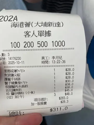 #20241003 🤍📍 #海港荟 @hoikong.hk 大埔南运路9号新达广场2楼101-120号舖 🍽️太子|九龙湾|观塘|马鞍山|将军澳|荃湾|屯门|尖沙咀|湾仔|西环|上环|太古|葵芳|土瓜湾|天水围|青衣|大围|蓝田|上水|粉岭均有分店➖➖➖➖➖➖➖➖➖➖➖➖➖➖➖➖➖#晚茶芥 $15/位.#新鲜菠萝咕噜肉 $148💭 咕噜肉都算系一味老少咸宜既菜式,酸酸甜甜咁大人细路都岩食,呢个啲肉咬落几松化,咬开睇入面又唔会好多肥肉,属于中上level🐷.#蒜茸粉丝蒸圣子 $115💭 一碟有5只,啲蛏子唔算好大只,唔系好顶级质素果啲,但ok唔差既,毕竟无论食蒜蓉粉丝蒸乜海鲜都好,个主角其实系粉丝同个豉油,食完仲特登倒起个豉油留尼点其他野😂.#孖宝 $298 🥢 #白灼海中虾 💭 望落色泽好靓,一睇就知非常新鲜,食落口感绝对可以用爽口尼形容,而且系成碟咁多只每一只都爽,虽然有跟个辣椒豉油,但觉得就咁食个鲜味都够晒,其他野都多余喇🦐. 🥢 #海港烧鹅皇 💭 呢个酒楼最出名就系烧鹅,点可以唔食返碟呢,叫个孖宝有烧鹅又有虾都几抵,烧鹅系例牌size,人唔多绝对够食,呢度既烧鹅仲会有啲蚝油豆做伴碟,其他地方的确好少见🪿.#阿拉斯加长脚蟹 $188/斤💭 重头戏系呢只蟹!4个人叫左只3斤半左右都食唔晒,蟹肉好鲜甜而且扎实,啲壳好易剪开,成条蟹脚可以大大啖咁放入口劲爽,想讲呢个价钱真系好抵食,就算去街市买尼食都未必有咁平🤑.#🐷在大埔 #🐷在太子 #🐷在九龙湾 #🐷在观塘 #🐷在马鞍山 #🐷在将军澳 #🐷在荃湾 #🐷在屯门 #🐷在尖沙咀 #🐷在湾仔 #🐷在西环 #🐷在上环 #🐷在太古 #🐷在葵芳 #🐷在土瓜湾 #🐷在天水围 #🐷在青衣 #🐷在大围 #🐷在蓝田 #🐷在上水 #🐷在粉岭 #🐷_食
