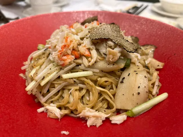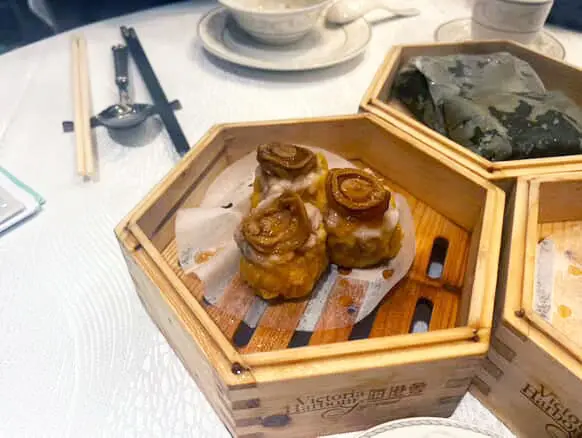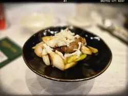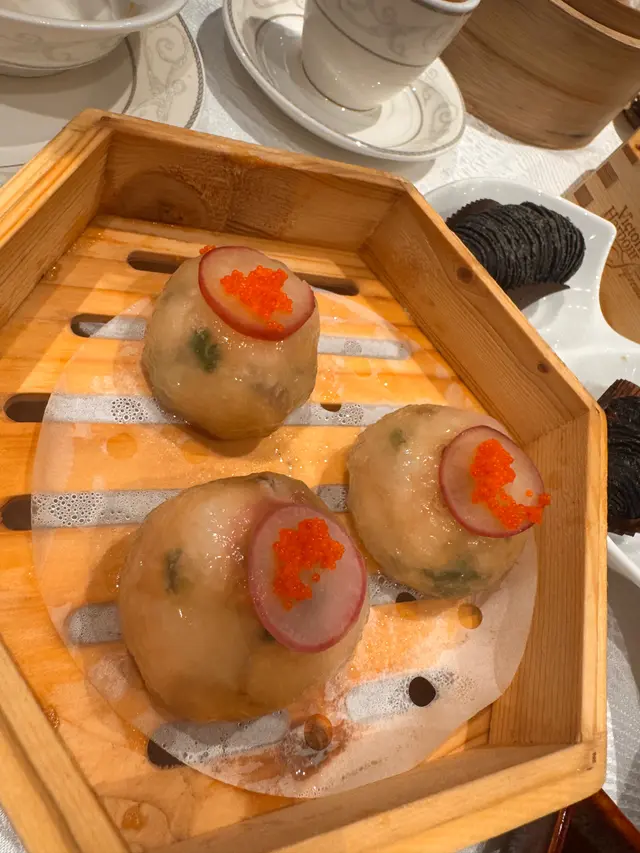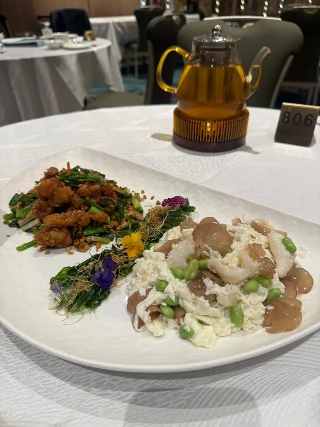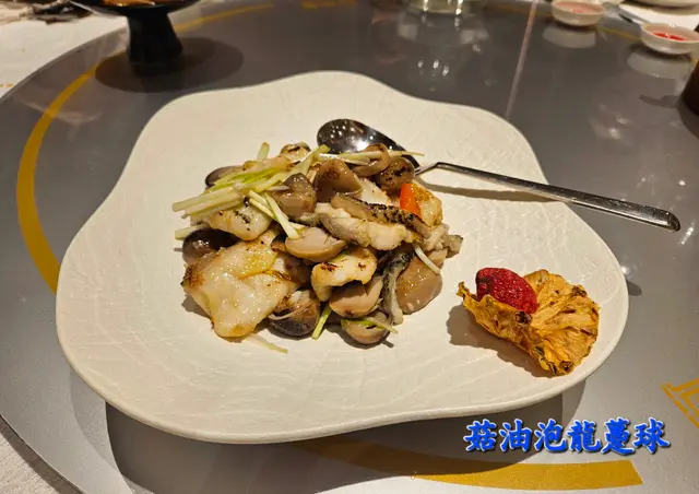 長腳蟹の盛一人前($498/位)之蟹肉炒長旺配蒸雲腿龍𧄌球:兩件龍𧄌球皮潤肉軟嫩,雲腿竟然超甜冇咸味,長輩欣賞廚師選配桂花粉絲夠清爽。