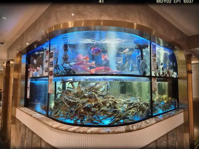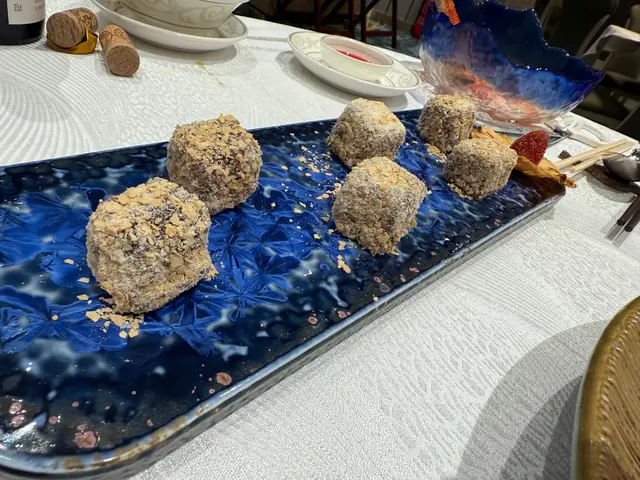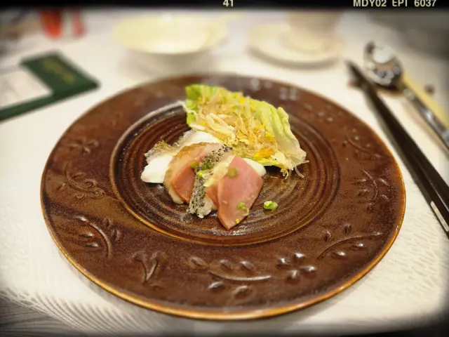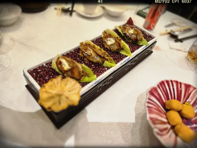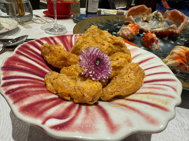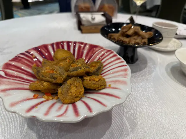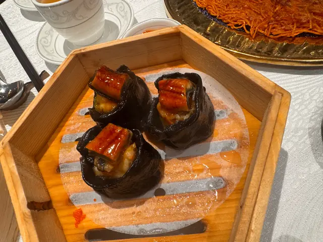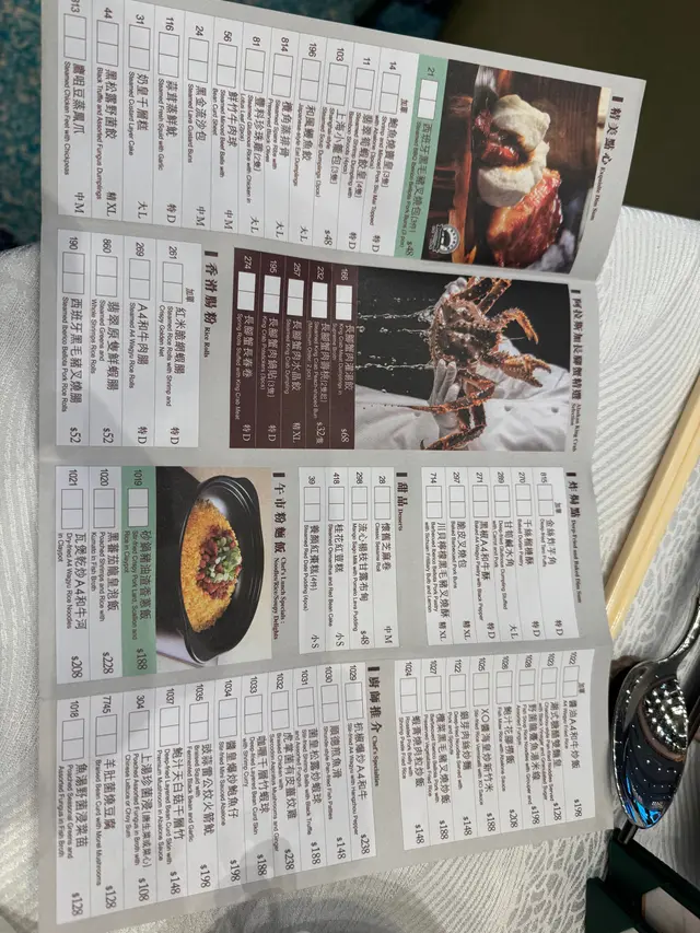 ,展出多款游水海鮮,實在吸睛!用餐大堂樓底唔算矮,間隔開揚,舖上厚厚嘅地毯有助吸音。據悉,店內另有三間廂房,分別最多可容納上八人、十四人及十八人,對應嘅晚市最低消費為五千蚊、八千蚊及萬五蚊,其中唯一設有私人廁所嗰間十四人房就最多人訂。每位席上都擺有齊備嘅自用及公用餐具。網上已有人上載厚本餐牌,其首頁先道出店子「金齏玉饌」嘅理念。最後一頁列明茗茶$18/位及其他雜項收費詳情。開瓶費$100/枝,實屬良心價,不過新張期間暫免開瓶費,酒鬼們有福啦
