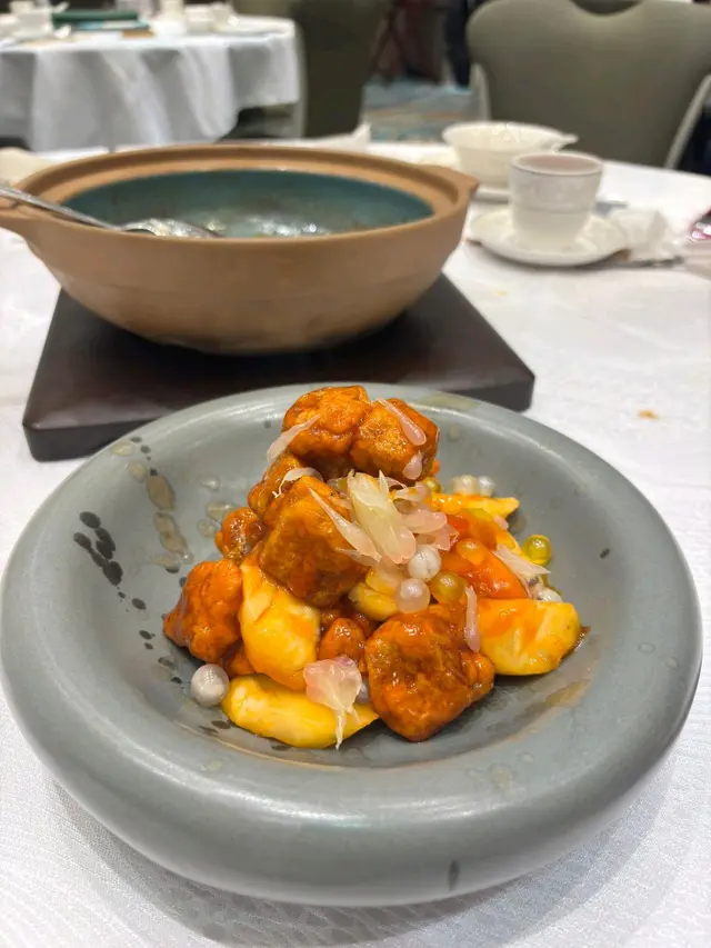 金磚滑豆腐($98):豆腐粒當真如餸名般呈金磚狀,食落外層香脆心嫩滑,微辣惹味,送酒一流!