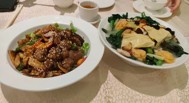 鮑魚,龍躉斑,燒乳豬,西蘭花炒帶子,炸釀蟹鉗,燒鵝