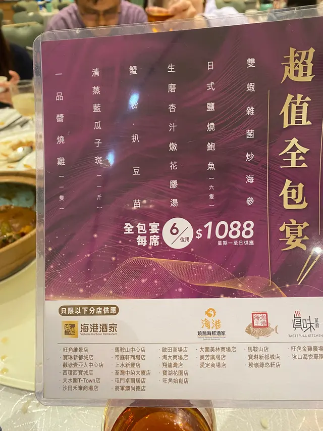 今晚和老公家人慶祝老公生日,衝住將軍澳尚德村新開嘅海港酒家「超值全包宴」而去,8個人開心share一圍菜,試勻套餐+追加菜式,依家同大家細數好壞~ 🥢 套餐菜式:傳統粵菜嘅穩定發揮 套餐首道雙蝦雜菌炒海參一上枱就贏哂掌聲!海參炆到軟腍入味,每啖都係膠質;蝦肉鮮甜彈牙,雜菌吸收晒鑊氣同醬汁,鹹香得嚟好惹飯,建議即刻叫多碗白飯! 跟住嘅日式鹽燒鮑魚(足足6隻)超有誠意,鮑魚經鹽燒後邊緣微焦,鎖住濃濃鮮味,咬落厚實彈牙,配埋特製燒汁,連平時唔鍾意食鮑魚嘅朋友都讚好! 生磨杏汁燉花膠湯絕對係「潤肺神器」!杏汁打得好綿密,甜度剛好,花膠燉到入口即化,唔腥唔滯,8個人分湯,每人都嘆到「歎聲」,秋冬飲簡直完美~ 蟹粉扒豆苗走清新路線,蟹粉鮮香撲鼻,豆苗翠綠爽嫩,兩者配搭平衡咗套餐其他菜式嘅濃郁,食落好refreshing~ 魚類揀咗清蒸藍瓜子斑,呢條魚新鮮到「甩轆」!肉質雪白細滑,豉油同熱油嘅香氣完全滲入魚肉,連魚骨位都啖啖鮮,連平時怕腥嘅朋友都食咗兩舊~ 最後嘅一品醬燒雞皮脆肉滑,醬汁鹹甜適中,帶少少蜜糖焦香,雞肉多汁唔柴,連雞胸都好好食,呢道菜最適合用手抓住嚟咬,夠晒過癮~ 🍲 追加菜式:暖胃+主食補位 因為8個人食,套餐分量其實都夠,但我哋仲追加咗幾款「私心菜式」: - 古法羊腩煲:羊腩炆到腍到「冧冧地」,羊味濃郁但完全唔膻,蘿蔔吸晒羊湯精華,秋冬食呢個煲,暖到入心入肺~- 瑤柱蛋白炒飯:炒飯粒粒分明,瑤柱鮮香、蛋白滑嫩,仲有蝦粒同青瓜粒增加口感,做結尾主食最適合,每人兜兩勺就清碟~- 仲叫咗時蔬同蜜汁叉燒,叉燒肥瘦比例完美,蜜汁甜而不膩;時蔬夠晒翠綠爽脆,平衡返個餐嘅油膩感~ 💰 埋單與人均:抵食到喊! 今次8個人食,套餐($1088/6位)+ 追加菜式(羊腩煲、炒飯、時蔬、叉燒等),最後埋單總共**$1640**(參考收據),人均計返大約**$205**!以呢個菜式質素、分量同環境嚟講,絕對係抵到無朋友,仲要係新開分店,服務同環境都好新淨~ 🌟 總結:家庭聚會/朋友飯局首選 海港酒家(尚德分店)環境寬敞光猛,新開張所以裝修好企理,職員落單上菜都好快手。今次嘅「超值全包宴」套餐覆蓋晒海鮮、湯品、燒味、時蔬,每道菜都做到傳統粵菜嘅水準,尤其是海鮮類鮮味十足~8個人食到飽到「爆煲」,人均先$200出頭,CP值高到離晒譜,絕對係將軍澳區家庭聚會、朋友飯局嘅新蒲點! 下次想試埋佢哋嘅海鮮火鍋同點心,應該都唔會失望~ 📍 地址:將軍澳尚德村商場內(海港酒家分店)👍 推薦菜式:超值全包宴、清蒸藍瓜子斑、生磨杏汁燉花膠湯…Read More