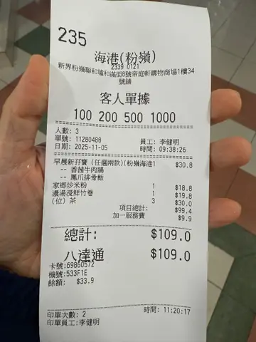 联和墟附近有几间茶楼本身几好食但系都相继结业屋企人就话成家嚟海港试吓10:30左左右右要排队10分钟之后有位呢间应该好多人帮衬,职员做到燥燥地由于星期六嘅关系本身价钱真系唔平,星期六日每碟点心都要加多$4仲要计返茶钱由于唔够人手,真系成日叫都冇人帮手等到有啲燥底听到隔篱枱食客都话唔怪得咁多人北上消费最嬲系冷气时冷时热不过食物就正常同平时差唔多,唔会特别难食同特别好味其实我谂老人家唔介意俾多少少钱但系要俾得值先大家开心