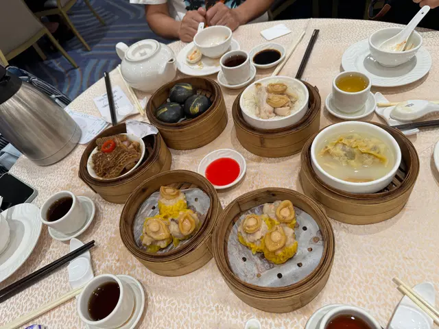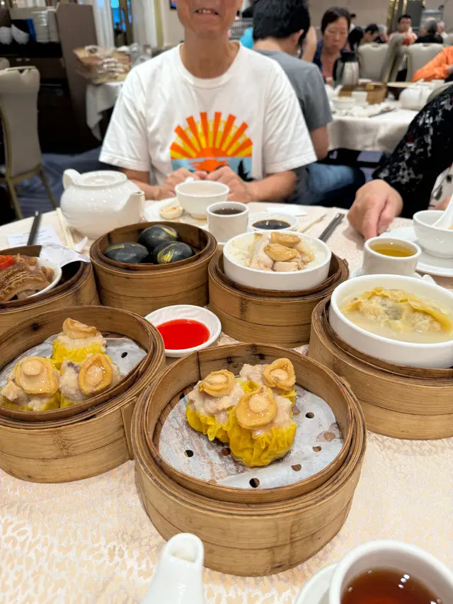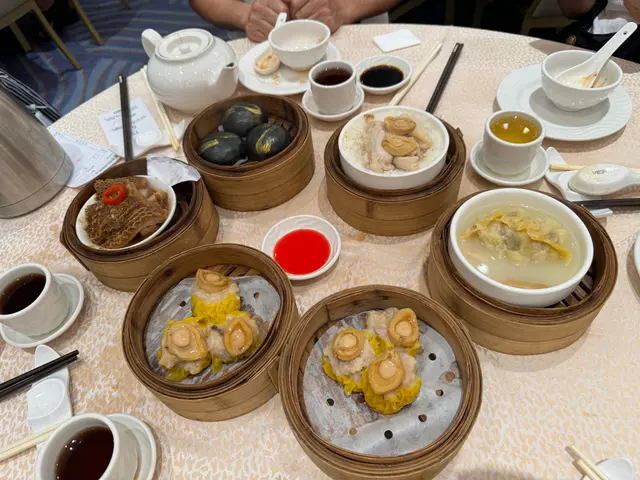 4個人11點幾來飲茶,今日係中秋節翌日,慶祝中秋節叫左奶王包,係流心既,好好食叉燒包沒有特別,餡較多凰抓排骨飯,正常份量及味道燒賣好大粒,好大粒蝦,當然其他都是豬肉牛肉腸都是沒有特別的貨色總共叫左2款包點,1款點心,1碟腸粉及1碗飯價錢為248,價錢差唔多,海港是大酒樓可接受多種付款方法,非常方便環境及坐位尚可,不是特別舒適。查看更多