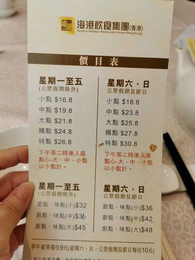 聯和墟附近有幾間茶樓本身幾好食但係都相繼結業屋企人就話成家嚟海港試吓10:30左左右右要排隊10分鐘之後有位呢間應該好多人幫襯,職員做到燥燥地由於星期六嘅關係本身價錢真係唔平,星期六日每碟點心都要加多$4仲要計返茶錢由於唔夠人手,真係成日叫都冇人幫手等到有啲燥底聽到隔籬枱食客都話唔怪得咁多人北上消費最嬲係冷氣時冷時熱不過食物就正常同平時差唔多,唔會特別難食同特別好味其實我諗老人家唔介意俾多少少錢但係要俾得值先大家開心查看更多