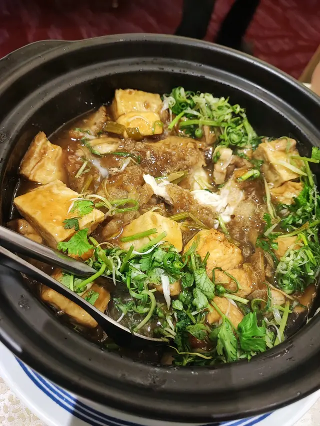 上水粉嶺呢間都係我食過好多次之中嘅酒家, 不過近年好似水準差咗好多價錢都還商宜, 每日下午茶就會抵食啲, 我最鍾意食呢度嘅蜜汁燒雞翼🥗呢個海鮮鍋湯麵賣相非常之好睇,但可惜,食落去味精好重,啲湯好鹹,個蚌仲要係唔新鮮,啲蝦肉又唔新鮮只係個賣相好睇唔好食😫唯一好食嘅就係燒鵝就比較出名,🙄不過好似水準比以前差, 之前聽人哋講佢哋係自設工場所以燒得比較好食💡環境衛生方面就真係普普通通, 唔知係咪因為酒樓永遠都人多,所以服務都係差😑查看更多