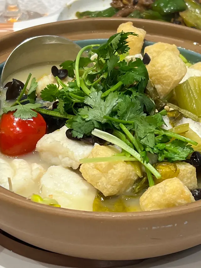第一次粉嶺上酒樓週五日 六時恭候咕嚕肉 新鮮菠蘿 青椒苦瓜(涼瓜)炒牛肉 薄切牛肉片 苦瓜切薄片酸菜魚 龍躉肉 小辣 芽菜 紅薯粉絲 辣椒 雲耳 唐芹 豆腐泡 芫荽三樣都OK賣相唔錯分量足查看更多