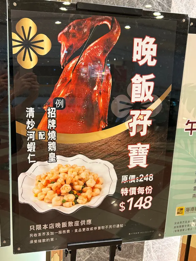 我哋一行兩人﹐喺七月八日晚路經呢間酒樓﹐被門外嘅晚飯孖寶宣傳單張吸引﹐入咗去食晚飯。我哋嗌咗一份晚飯孖寶﹐兩個雞湯花膠燉螺頭﹐全部嘅食物﹐都係水準之下!先講燉湯﹐係一大煲煲好𢳂出嚟嗰隻﹐而唔係原盅燉湯﹐火候還好﹐但就唔夠熱、唔夠鹹。跟住嚟嘅係燒鵝﹐上枱係微溫﹐皮唔脆﹐肉質非常老﹐有幾舊直頭咬唔開﹐底下墊底d豆d味好甜、好怪。跟住到大佬出場﹐好聽嘅叫清炒河蝦仁﹐唔好聽嘅就係急凍三色豆撈急凍蝦仁!見到個賣相已經無晒胃口﹐好似隨意喺冰箱攞兩包急凍嘢撈埋一齊咁!你急凍貨都唔緊要﹐比少少誠意﹐炒得夠味d、比d火喉、賣相靚少少都得啩?!仲衰過自己屋企炒﹐咁都好意思攞出嚟賣比人?老實講﹐話就話特價﹐其實加埋d茶芥雜費﹐都唔係好平﹐你做得特價都係想吸客﹐而家你比d咁嘅嘢人﹐食完一次都怕怕﹐仲點敢返轉頭幫襯?查看更多