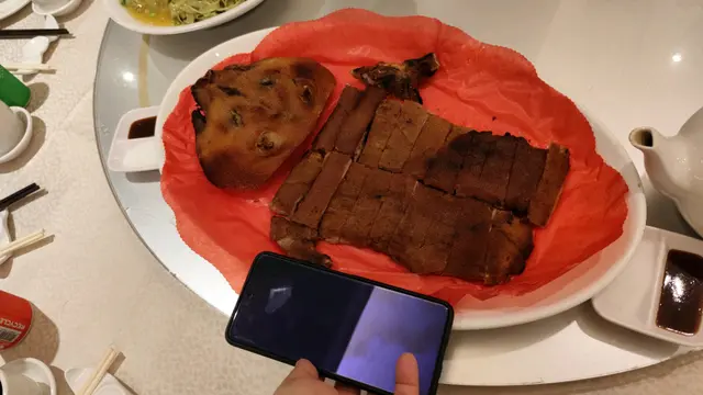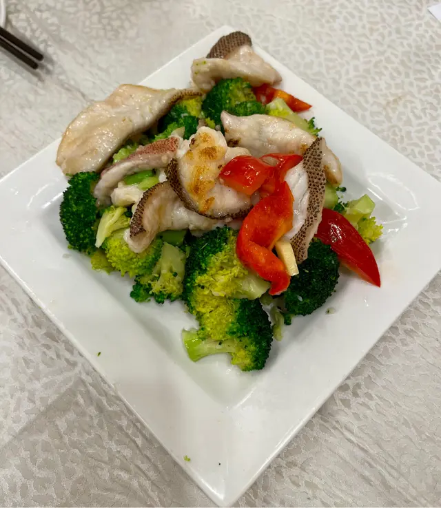 大星班兩味:翡翠炒班球:白烚西蘭花加東星班塊果皮蒸頭腩:消失的果皮配豉油清蒸魚頭魚腩,䏲落似細魚🤦🏻‍♀️海港燒鵝皇(例牌):招牌菜,皮脆肉質偏嫩,脂肪唔多而且味道入味。青瓜海蜇:青瓜口感清脆,海蜇係用海蜇頭口感會比較爽脆,但整體味道唔夠麻辣偏酸當睇跟餐牌嘅時候,酒樓經理一路推銷仲想直接幫我地直接決定食什麼。另外,差不多每次食都有漏單情況發生,今次食完所有菜都未見有果皮蒸頭腩。當後加青瓜海蜇到有,而果皮蒸頭腩先姍姍來遲,前後大概都等咗45分鐘先有,其間都有反應漏單。而且,價錢偏貴,性價比低如果唔係位置就腳,方便老人家都唔會選擇過嚟食さらに見る