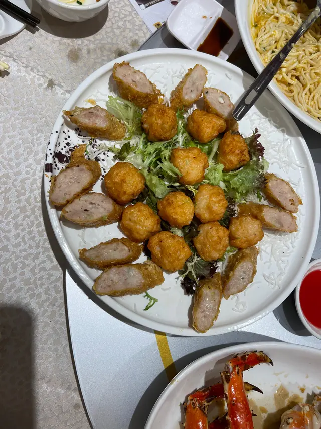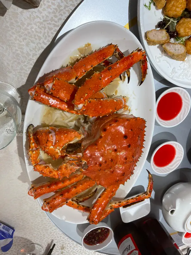 今日有個長者生日, 所以選咗嚟食中餐, 而家呢個時間最多人食阿拉斯加長腳蟹, 於是點咗一個呢啲套餐, 都幾抵。 另外再加咗羊腩煲及龍蝦伊麵。環境就真係一般般,勁逼。個乳豬脆卜卜都幾好食,唔太肥仲跟少少肉。 :)阿拉斯加長腳蟹:都幾大隻,幾新鮮, 啖啖肉實實地咁,幾鮮甜。 啲膏都幾香滑。不過之前我去另一間食,會幫你用一個碗倒晒啲膏出嚟,然之後俾你點蟹肉食。 可能實在太忙啲店員都唔得閒應你。羊腩煲:味道OK,不過啲肉實在太韌,好難咬,未夠腍。龍蝦伊麵:龍蝦都幾爽蛋,感覺幾新鮮。其他嘅餸菜,整體唔錯。上菜亦都好快。嗰 竹笙海皇會生翅,就真係麻麻哋⋯⋯另外壽包一半係蓮蓉,一半係奶黃。我都係覺得蓮蓉好食啲。さらに見る
