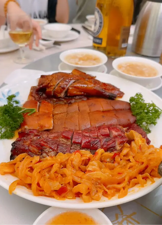 想搵一間親朋好友聚餐食飯嘅餐廳, 位於荃灣8咪半既海港酒家就係好好嘅選擇。餐廳位置離地鐵站好近, 行幾分鐘就到。 我哋一行九人, 慶祝朋友生日, 就揀咗呢間食物大眾化嘅酒樓。酒樓的裝飾不是很浮誇, 餐廳佈置得很優美, 感覺好舒服, 枱枱櫈櫈都擺得唔係好逼, 對比起大排檔,坐得算舒適。餐廳主打燒鵝, 我哋就叫咗半隻, 肉質鮮嫩, 而且好多肉, 個皮都好脆。另外仲叫咗唔少嘅餸菜, 有蜜汁排骨、 咕嚕肉、 酸菜魚、 鮑汁炆鴨掌、 黑椒排骨等。。。。。他們味道都唔錯, 炒得好惹味, 份量適中。總括而言, 呢間酒樓好適合一大班人黎食飯, 又唔限時, 值得過嚟試試。さらに見る