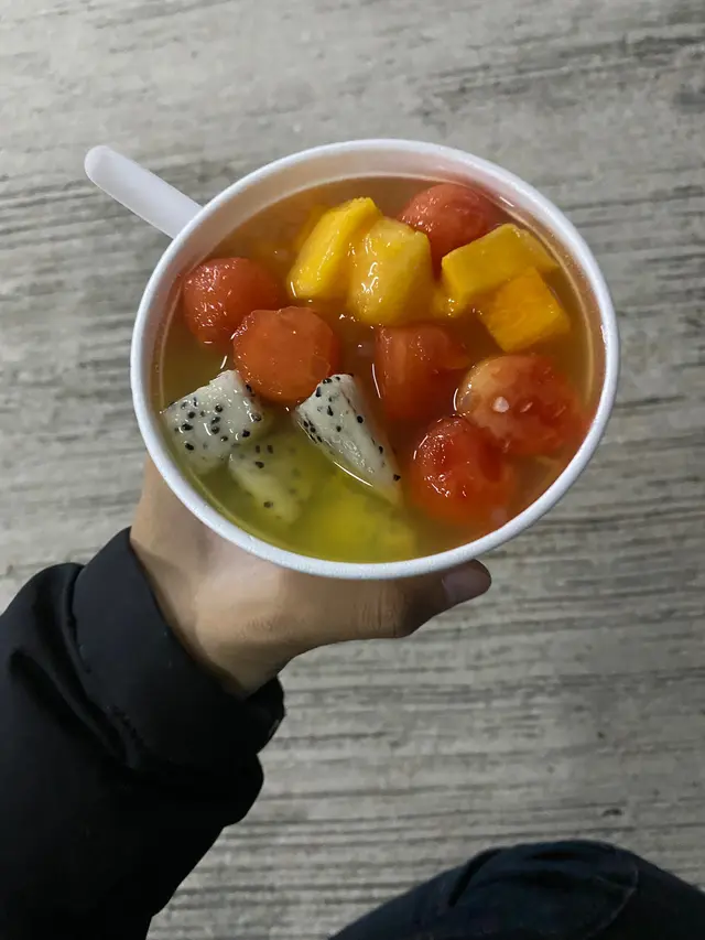 雜果西米露 酸左? 定唔知罐頭汁問題有西瓜 木瓜 一粒椰果 一堆罐頭雜果…西米啲汁勁酸..放唔到入口但唔想浪費 食哂啲水果佢就算..小店黎講 算貴..早知食格離果間….去到深夜十點 仲有開門 所以幫襯左..但真係無下次…查看更多