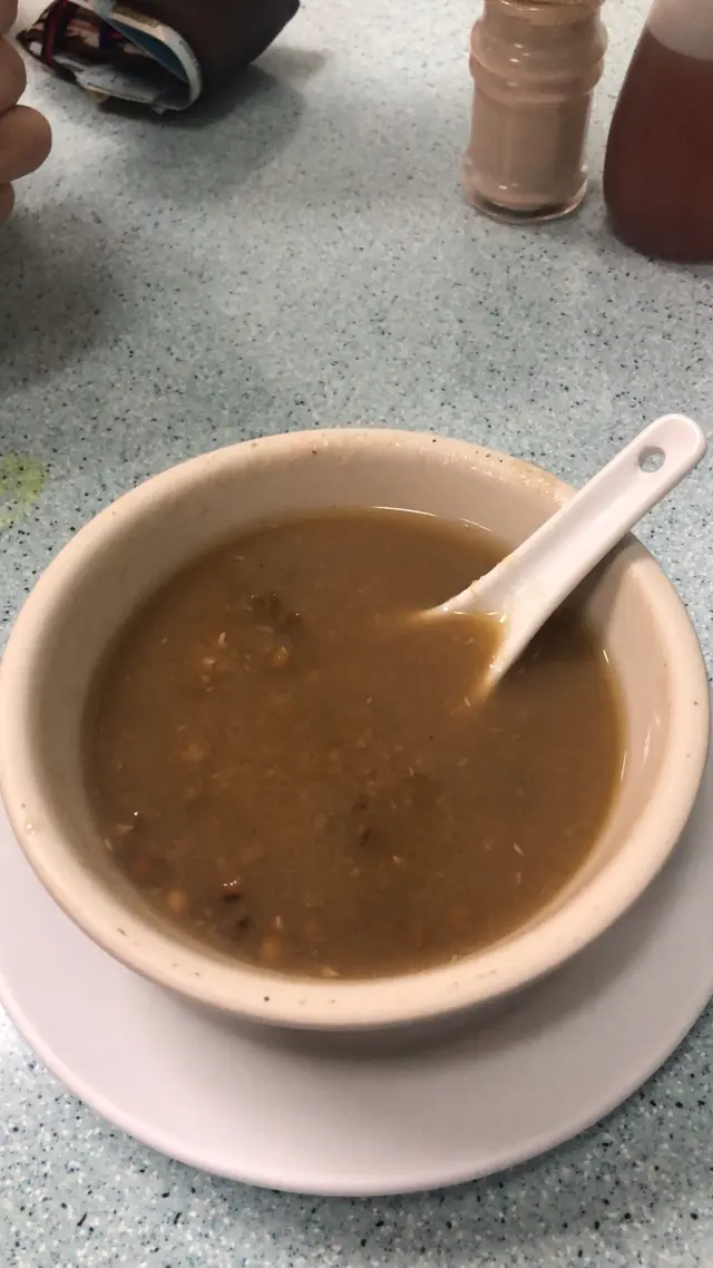 街坊生意甜品店呢間甜品店細細個都成日食,仲記得以前一個炒面都只係$12-13,今日一去都已經$20。呢間以前一直都係食開甜品,最鍾意食佢個椰汁黑糯米,仲要係凍個隻,貪佢入面有清心丸,黑糯米仲有小小ge 小丸子。今次想食番呢個甜品,點知已經同之前好唔同! T^T我叫左個熱ge 椰汁黑糯米($26), 可能因為係熱啦,所以佢特別甜,甜到我食左一半已經有d頂唔順…同埋佢而家都冇埋清心丸喇,可能都因為成本問題卦…覺得冇左清心丸都差咁d,冇咁有咬口另外,我地仲叫左份腸粉($13)腸粉就冇咩太特別,份量我估就係3條到呢間真係街坊生意,過下口引我覺得ok查看更多