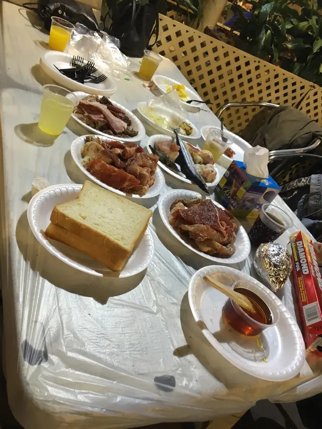 經過即興放工燒野食唔成功之後,一早book定BBQ,N年前又無同舊同學食,黎回味下。咁平安夜唔浪漫地柴娃娃燒燒佢。248大節預左貴啲,無所謂開心就好。黎到門口好似唔憂做咁既口氣問咩number呀(呀⋯⋯西人黎?)我講左,佢話無,可能我記錯就走去check我mark既我又無講錯,咁可能我聽錯左啦,但佢睇本booking都費事,又無問我咩電話號碼check,咁我見佢大把爐咪問咁walk in同book有咩分別,佢話無(咁早響啦攪咁耐)照去俾錢⋯⋯好似配給咁分左杯碟同叉廁紙。走去個場中間,其實咁大個場又關晒啲擋風屏又無開風扇都真係好焗⋯⋯燒炭咁。自從上次去完公司附近果個燒烤場,我見到三個凍肉櫃係有解左凍既野食已經好滾動,仲有熟食咖喱魚蛋炒飯炒菜之類,有啫喱糖但就無左以前勁食既什果沙律,得返車厘茄同菠蘿粒(勁細粒,想叉住燒都唔得)。牛油蒜蓉牛油蜜糖方包粟米青椒茄子番薯有多春魚同大條秋刀魚(錫紙廿蚊卷),蔬菜唔多,即食野有一櫃,有大量丸同腸類:龍蝦丸、魚蛋、墨魚丸、芝心丸、獅子狗卷、紅腸芝士腸、雞肉腸之類。肉有兩櫃,正常嘅牛扒豬扒金沙骨叉燒羊架秋刀魚多春魚雞扒雞翼都齊。但啲豬扒金沙骨俾啲疏打粉掩過既😒,羊架牛肉雞扒雞翼正常既。燒到十一點啲人趕住出市倒數,走左好多人就通爽左啲。比起其他場,呢度叫做近屋企,比起以前叫唔多人,雖然野食無以前咁好食又貴左,不過想燒野食還是會來。呢個場中可以帶動物入嚟。我哋見到隻金毛尋回犬係咁望住啲嘢,啲野又好香但無得食其實都幾陰公豬。查看更多