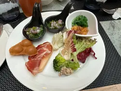之前同friend 兴起想食buffet, 大家也住港岛南区,咁见d YouTube 有d 讲得几好食,就try try 依间,我哋经Klook 买二送一promotion $1937, 其实又唔系见好平,但是但la 😂😂入到酒店大堂有一个超巨型长筒型鱼缸,但太暗睇唔d 鱼🤣🤣, 由右边扶手楼梯上一层就到,之后可以入到酒店内游水池区,酒店设计系所有building 围住水池的,侧边就是酒店的餐饮区,见水牌就找到buffet 的位置⋯⋯其实自助晚餐大多大同小异,暂时近年未有一间感觉会好出色,好多有时上网睇好多都名过于实,但这间可以一试,只可说正常(ok la 😆)但有几款值得推介…..(5粒👍为最好)刺身:带子,油甘 ,虾👍👍👍👍👍羊架 👍👍👍👍松汤 👍👍👍👍咸蛋芝士cake 👍👍👍👍Ice cream 👍👍👍👍 M 和 H 字牛扒 👍👍👍反宜主打的龙虾🦞,又唔系太ok , 蒸得太老,size 都ok 大;清蒸鲍鱼是晚又没有,失望🤪饮品任饮系Ice lemon tea , coffee, 但麻麻,要soft drink 或酒类任饮加$100 (加10%)-要左😆😆Service 几好,收碟快、有笑容、有服务…但啱一家大细来,小朋友有好多小糖果等等,和有个小朋友玩的地区.. 餐厅地方正常都唔算太迫夹。…查看更多