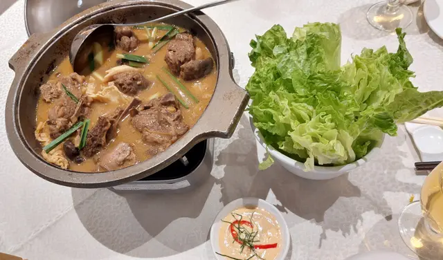 聯和墟覓食平日$1乳豬優惠$168古法羊腩煲 博士等级42022-11-231K 浏览 关注 202211月的平日--海王漁港地點位於: 粉嶺馬適路3號綠悠軒商場地下:)又幫趁海王漁港天氣轉涼,海港開始有羊腩煲供應,加上還未試平日才有的$1優惠,就來個平日晩飯時段試試。有興趣試的朋友,請仔細觀看條款:)五時三十分walk in,有位。想不到,後來真的很快爆滿,很多客人也有點$1優惠。人多飯聚還是先致電訂座較好。開了龍井茶($13/位),點餐,已想好吃羊腩煲和$1乳豬:侍應有效率送上爐:)羊腩也很快上桌:)羊腩比我想像中多,有約十件大大件,配料有枝竹,冬菇等等今年的羊腩炆得夠火喉,不會太硬,雖然不全是腩位,但不會件件骨無肉食,有幾件啖啖肉另有送上新鮮生菜,洗得乾淨,放得企理,生菜索羊腩汁,絶配:)白飯($13)大大碗,軟硬度適中食到後段,$1乳豬上桌:)四份一隻乳豬,約有八件,不會太肥皮位燒得有點像燒肉的皮,脆得來有點硬不過,$1,無期望無失望可點沙糖和乳豬醬埋單: $228.5古法羊腩煲$168,價錢不貴,份量不少,味道不錯平日的$1乳豬優惠,可以一試另一日颱風天平日飲茶燒鵝飯一碟,好像($35),抵食,鵝和飯份量也足,鵝皮香脆肉嫩,不過皮下脂肪較多,有點肥膩海王漁港間中都會轉換點心款式,最近試了羊肚菌釀百花(特點),百花索了底部菜味,充滿草青味,不好吃羊肚菌鮮竹卷(大點)這款羊肚菌點心較好吃,鮮竹卷不會太多蠔油汁,有淡淡菌味,味道不錯炸雲吞炸得金黃香脆,有隻蝦做餡瑤柱蔥花炸兩腸味道正常發揮參考圖片下午茶點心紙…查看更多+ 13以上食记乃用户个人意见 , 并不代表OpenRice之观点。赞好分享聯和墟覓食平日$1乳豬優惠$168古法羊腩煲 海王漁港 https://s.openrice.com/QrLT0z4kZ00检举 张贴 评分4味道4环境4服务4卫生4抵食用餐日期2022-11-10用餐途径堂食人均消费$115 (晚餐)