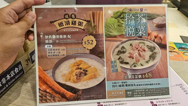 位於尖沙咀的海皇粥店,以其地道的粥品和經典的小吃而聞名,讓人不禁想起童年的美好回憶。我最近光顧了這家店,點了幾道經典菜品,體驗了豐富的味覺享受。首先,我嘗試了「懷舊嫩滑雞粥」。這碗粥的質地非常細膩,粥底滑順,搭配著嫩滑的雞肉,讓人感受到家的溫暖。每一口都充滿了古早的味道,讓我回憶起小時候的早餐時光。為了增添風味,我還配了一份煎堆,外酥內軟,甜而不膩,與粥品的清淡形成了完美的對比。另外,我還點了「海皇一品粥」。這款粥品不僅選用了新鮮的海鮮,還有豐富的配料,口感層次分明。粥底清香,海味濃郁,讓人欲罷不能。配上鮮蝦腸粉與油條,讓整體用餐體驗更加圓滿。鮮蝦腸粉滑嫩可口,油條則酥脆香口,兩者搭配得相得益彰。在飲品方面,我選擇了豆漿,溫暖可口,恰到好處地中和了粥品的味道,讓整頓餐更加豐富。總的來說,海皇粥店是一個讓人放鬆心情的好地方,無論是粥品還是小吃,都讓人感受到濃厚的懷舊氛圍和地道的美味。如果你在尖沙咀,絕對值得一試!…查看更多