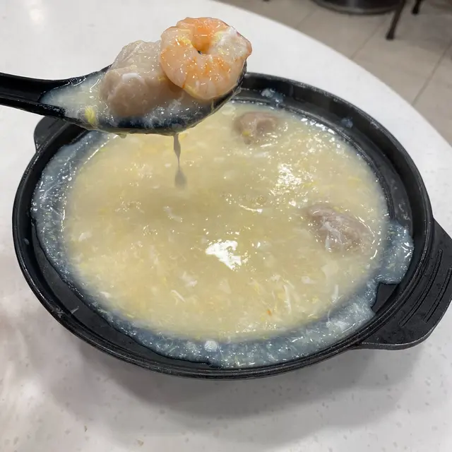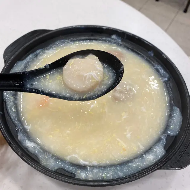 凍冰冰🥶最啱就食碗熱辣辣嘅粥🥣,海皇粥店原來有好多特色粥品㗎.今次我就食咗黃金帶子笑蝦蝦😃,其實佢係鳳尾蝦帶子肉丸蛋花粥,佢仲配咗一款小食,可以揀牛脷酥,煎堆,咖喱魚蛋🍡或者燒賣,我就揀咗煎堆,因為唔係好多地方有得食呀嗎,煎堆煙煙銀銀,芝麻味好香呀😋.粥入邊嘅材料都幾新鮮,隻蝦唔係雪藏蝦嚟架,食落蝦味鮮度🦐十足,肉丸都好彈牙呀,又好有肉味,粥落咗蛋花🥚,變成黃金嘅顏色,好睇又好食😋查看更多