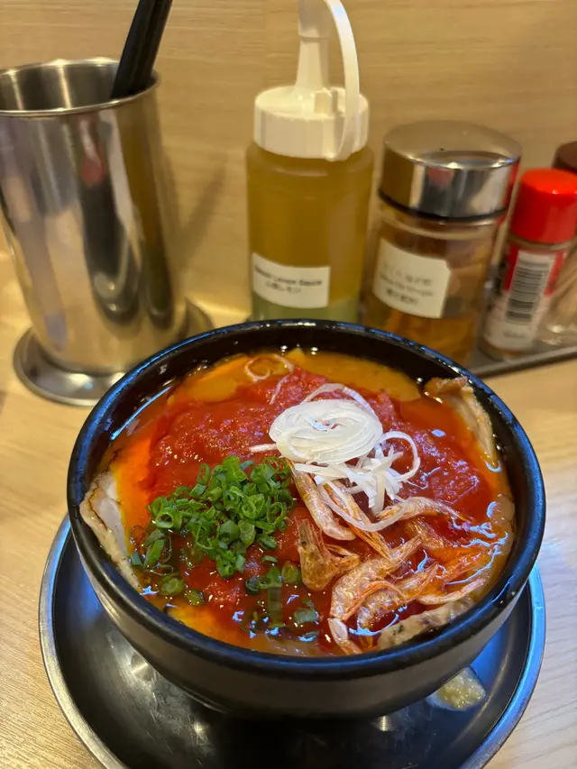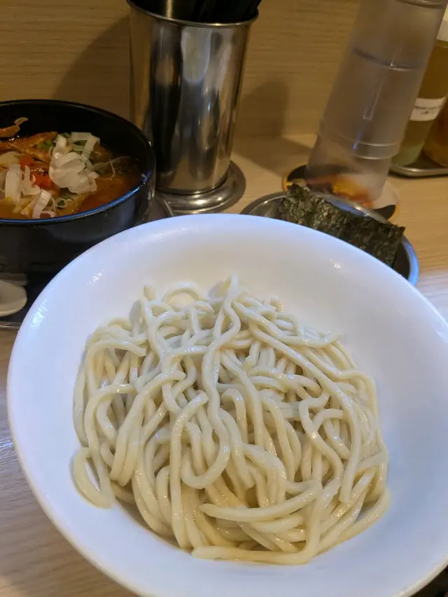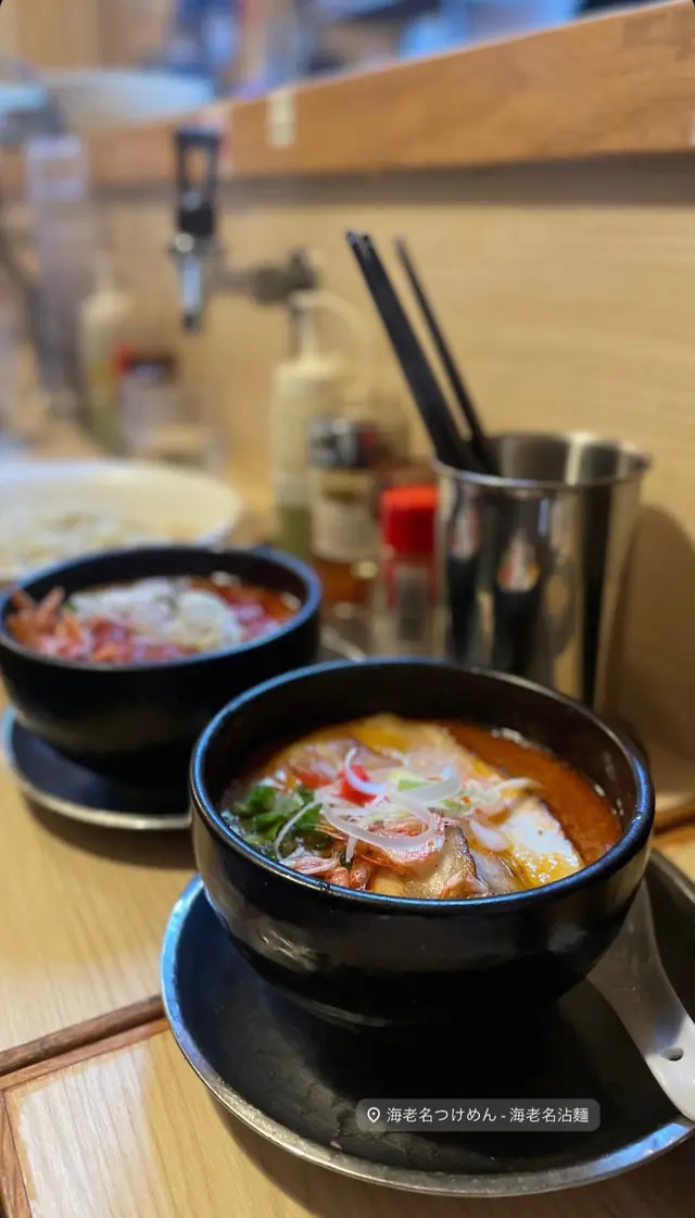 今日3號風球又唔想留喺屋企,唯有出去試吓海老名的沾麵(想試咗好耐)。去到長沙灣其實都有啲難搵,因為門牌比較簡潔。但皇天不負有心人終於搵到😅我地未開門入去,個店員已經衝出嚟招呼我哋入去坐🤭入面好有日本feel,播著日本歌曲,座位亦只有數個。一坐下店員即為我們介紹,並說蠔麵已經賣完了因一天只有五碗。於是我們點了兩客沾麵(蝦汁味噌沾麵和蝦汁醬油沾麵),看著店員在前方煮麵的時候好似好似置身於日本。當蝦麵汁送上時賣相相當美觀和吸引,其次就是一碟的沾麵。店員告訴我們吃之前要把麵汁先攪勻,又或者可以加少許蝦油醋提鮮,試了兩啖湯汁好味而不鹹!第一啖吃入口時... 嘩不得了!面質煙煙韌韌再配合蝦汁味噌真的很好吃哦!叉燒用火炙過夠野味又香口,蛋仍是流心好吃👍但係最特別的是櫻花蝦,我覺得這裡的櫻花蝦和外出吃到的是有點不一樣,這裏的櫻花蝦口感好飽滿紮實(不是薄薄的那種)。而當你吃完整碗沾麵的時候,店員會加幫你加熱湯,當湯飲又是另一種嘅享受和層次(我們連湯都喝光)。😂😬🫡下次必定提早去試它們的蠔麵!😁🥂🤟…查看更多