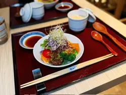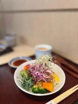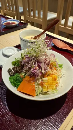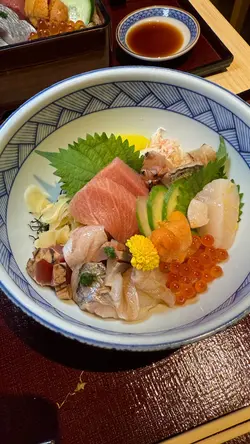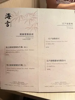 魚魚魚,全部都係魚!唔講唔知,係中環威靈頓街55號地庫原來隱藏咗間高質魚生丼飯店,門面好低調,真係眼大行過都未必見到,用餐位置要落層樓梯先到,真正隱世feel。成間店行簡約日系木調風,光猛乾淨,開放式廚房睇到師傅即切魚生。呢度嘅丼飯選擇貴精不貴多,價錢係貴少少,但絕對物有所值。最正係可以試到廚師發辦Omakase丼飯,季節限定款式,一定高質!仲有一點要提,全店用正宗日本米,飯粒煙韌有咬口,同魚生夾埋一齊食,真係滿足到震!每個套餐都會跟齊沙律、茶碗蒸、麵豉湯三樣,誠意十足!沙律絕對唔係求其幾條菜咁簡單,有成七、八種蔬菜,菜葉新鮮爽脆,加埋酸酸甜甜嘅日式醋汁,清新醒胃;茶碗蒸蒸得超滑溜,入口有蛋香,入面有白果、蟹柳同粒粒青豆,配料不馬虎;最後的湯唔係一般死鹹味噌湯,而係用櫻花蝦、豆皮同蔥花煮成,湯底鮮香清澈,唔油膩。海言廚師發辦魚生飯-特上 $430作為呢度嘅招牌菜當然要食,成碗起碼有超過12款刺身,色彩繽紛,睇見都開心!除咗基本嘅三文魚、吞拿魚,重有鮮甜唔腥的海膽;微微鹹香一咬爆汁的三文魚籽;大大件油花勁靚的拖羅,食落滑順豐滿;金目鯛皮脆肉甜;鯖魚醃得夠酸香;燒完魚油勁香火炙白身魚;仲有絕冇雪味的松葉蟹肉等,成碗丼口感極豐富!醋飯微溫,酸度適中,飯粒分明又夠黏度,同魚生比例1:1,食完大滿足!藍鰭吞拿魚魚生飯 $340吞拿魚控必點!呢碗專攻藍鰭吞拿魚,由大拖羅、中拖羅、赤身、吞拿魚蓉組成,真係豪華級享受!大拖羅油花均勻,入口即化,魚油香爆棚;中拖羅肉質柔嫩得嚟唔膩;赤身彈牙有咬口,魚味濃郁;吞拿魚腩蓉軟滑帶油脂香,撈飯一流;火炙吞拿魚有淡淡灸香,魚油豐富。成碗都係頂級貨色,脂肪含量高但完全唔腥,好好食!…查看更多