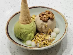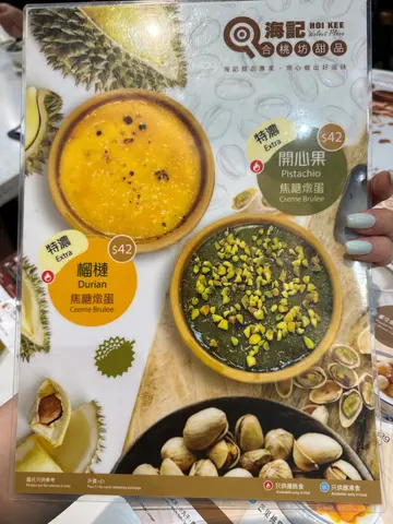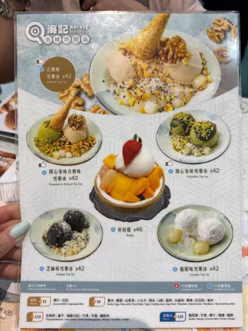 海记合桃坊甜品点了两款甜品, 都不错。首先店的生意不错, 我们八人去当然要等位, 等了约十分钟, 都算合理, 如果晚一点去, 人流就不会那么多。开心果雪糕:味道不俗, 有开心果香, 没有冰块或沙冰, 而是很绵滑的, 不错。合桃雪糕: 味道还好, 不及开心果好吃, 合桃味没有很香, 也没有很突出, 还以为合桃是镇店招牌, 但结果有点失望, 味道还好, 没有要点的必要, 宁可点两球开心果雪糕。但雪糕的质感是可以的。合桃没有很香, 如果用焦糖合桃当然更好。丸子不过不失, 没有加分, 也没有扣分, 有多点口感, 但它本身没甚么味道, 所以与其用丸子, 不如加多点开心果碎, 或者焦糖开心果碎。还点了开心果cream brulee, 这个好吃, 因为之前都只吃过原味的, 第一次试开心果味, 有惊喜。首先它的厚薄适中, 所以吃起来又满足, 又不会太腻。表面那层焦糖又薄又脆, 不会鎅口, 好吃, 薄薄的有增加口感。底下的炖蛋相当绵滑细腻, 开心果味很香, 我觉得比雪糕的开心果味更浓郁, 相当滋味, 每一口都是享受, 好好吃。我一个人都可以吃光一个, 不会腻, 两人分享也不错, 这款特色甜品我会推介。价钱也不算贵, 42元很合理, 尤其开心果原材料是那么贵的情况下, 所以这一款我推介一试。…查看更多