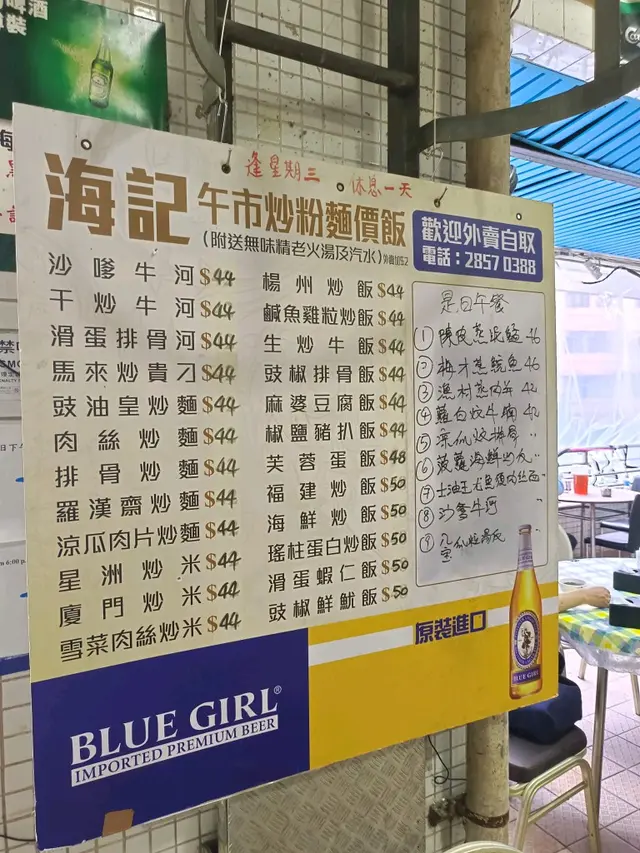 海記海鮮大牌檔 (西环) 网址: https://s.openrice.com/QrLS0i1O100 地址: 香港西環石塘咀皇后大道西470號石塘咀市政大廈2樓熟食中心CF1號舖 电话: +852 28570388
