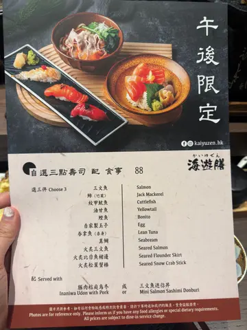 朋友知我生日,带我去食高质日本菜﹗果然没介绍错,有惊喜﹗这里必点的,一定是 极上‧厨师发办 ,我们来个十四品 HK$388。上菜好快,当手握寿司放在桌上后,我双眼就没有离开过,单是看刺身色泽已经知道其新鲜味美,那油润的光泽感,滋润著眼球,我已急不及待要开动了﹗鹿儿岛间八、北海道帆立贝寿司、赤海老、吞拿鱼(赤身)、吞拿鱼中腩、海鳗、松叶蟹肉、金目鲷、时令鱼、火炙红叶酱比目鱼裙边(一口丼)。赤海老加上虾头膏作点缀,味道更上一层楼;帆立贝搭配柚子皮,增添清甜香气。吞拿鱼中腩鱼油丰富,入口即化,非常鲜美;口感细嫩的海鳗包著寿司饭,这样入口更有层次感。松叶蟹肉鲜甜多汁,份量十足。火炙红叶酱比目鱼裙边(一口丼),火炙后迫出鱼油,香气甚为诱人,入口鲜甜柔软。 余下四品就是清新爽脆沙律、日式海鲜茶碗蒸、面豉汤及甜品,这晚的甜品是红豆小丸子。松叶蟹肉梅子素面HK$136,鲜甜幼嫩的松叶蟹肉,爽滑的梅子素面,卖相精致,超好打卡的,把它们一并放到以鲣鱼汤及青柠汁制成的冷汤中,微酸甜而清爽,爱上了﹗要来点热食啦,极上‧串烧盛HK$188,鸡脆骨串、鸡翼、鸡皮紫苏虾卷、鸡大腿肉串、车海老(虎虾)。最爱鸡皮紫苏虾卷,口感丰富,想一吃再吃;鸡翼香口、大腿肉爽弹又肉嫩。烧牛舌芯粒三味HK$138,搭配洋葱丝及京葱丝,牛舌芯外焦内软而爽弹,另可分别蘸上淡雪盐、和风紫苏大根酱、柠檬盐烧酱,更有风味。…查看更多