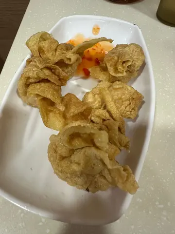 大埔海达鱼蛋粉,之前好多网上食评都话好食决定嚟试一试!由于当天河粉卖晒,唯有转粗面🥲鱼蛋弹牙鲜甜,鱼味重,口感好好!配埋大大碗粗面,吸满咗汤汁嘅鲜味,汤底清淡而鲜甜,配埋招牌鱼皮,鱼皮酥脆,极高性价比嘅一碗鱼蛋粗😋份量足够,价钱又亲民,大家绝对要试下!😋另外再试一试呢度嘅招牌酥炸云吞,咬落去完全没有雪藏味道,虾肉猪肉鲜甜,而且炸得刚刚好,热辣辣食起上嚟真系好滋味,价钱又唔贵,大家可以试下食鱼蛋粉再食埋炸云吞,满足感十足!美食能容天下事😋