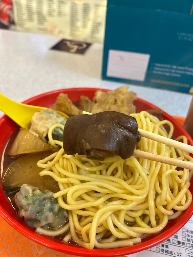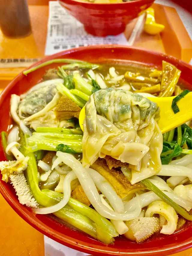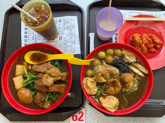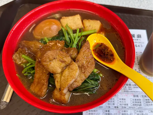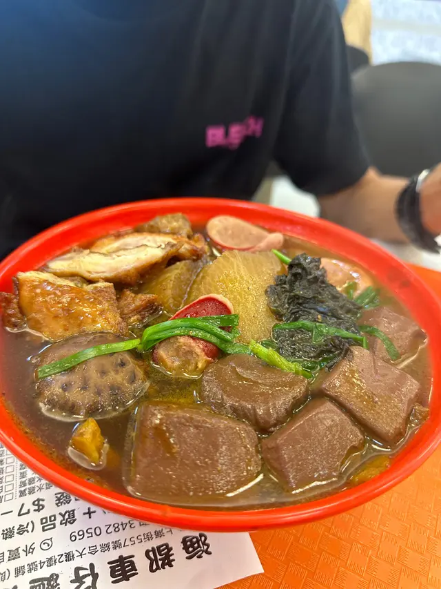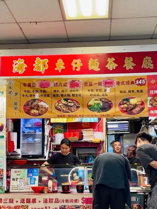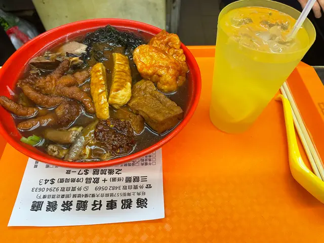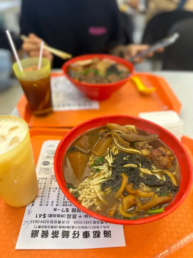 海都車仔麵茶餐廳是在旺角熟食中心的小店,道車仔麵為特色,店舖前方設有自助區,提供蔥、炸蒜及自製辣醬,讓顧客自行添加。我今天點了一個牛魔皇套餐,套餐包括牛肚、牛筋、牛腩、牛丸、滑牛肉和牛柏葉,選擇了秘製辣汁配搭米粉。牛肚爽口彈牙,而滑牛肉帶有咬口,肉質鮮嫩。不得不提及的是其秘製辣汁味道濃郁,辣度過人,後勁凌厲卻不過於麻木,帶有層次感,絕對是辣味愛好者的必試之選。米粉吸滿醬汁,惹味。另外,我和朋友還選了四餸車仔麵,三餸為經濟配搭,我升級至四餸,選了蘿蔔、豆卜、豬腩肉和香茅豬扒,配搭沙嗲汁及粗麵。豬腩肉入味軟腍,入口即化,口感一流。蘿蔔外表有咬口,內裏軟腍且入味,而香茅豬扒浸湯後軟硬兼備,香茅味道突出。粗麵帶有微蛋香,配上沙嗲汁的濃郁香氣。飲品方面我點了凍檸茶和凍檸樂。凍檸茶茶底濃郁,與經典茶記口味一致,搭配新鮮檸檬,酸甜適中,解膩又提神。凍檸樂同樣使用新鮮檸檬,味道清新,冰涼舒爽,特別適合炎熱的夏日。…查看更多