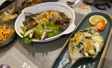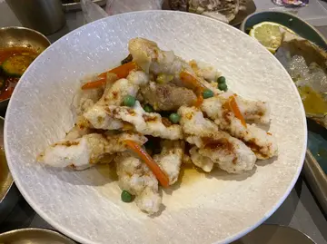 韩印红除了超市业务外,原来还在尖沙咀开了一间韩式餐厅🇰🇷听说是由韩国厨师主理,其食物质素令人期待🤓————————————————————————前菜共有六款,每款都开胃清新😋当中青瓜丝和薯仔丝就最得我心🥰加上可无限任添,值得一赞👍🏻虽名为炒杂菜🥗但实则是韩式炒粉丝🤣麻油香气浓郁,配料丰富😋但相对上粉丝比例偏少🤏🏻而且略嫌油腻。芝士无论在味道还是拉丝效果方面都不太明显😓蛋卷口感过熟,质素未如理想😥未能对得上其售价🧐紫苏油香气独特😚紫苏味道不算浓烈,即使是不喜欢紫苏的朋友亦可接受👌🏻大量海苔增添香气,面质方面烟韧有咬口,整体令人满足😋半半炸鸡 $256鸡件份量合理🐔炸得非常香脆,肉质算是嫩滑但肉汁欠奉🙊炸粉亦略为偏厚,味道方面非常香甜,但牛油味未算明显🧐即使裹上酱汁,炸鸡外皮依然香脆🥳配上蒜片更添风味,相比之下这款口味更合我心意🤩————————————————————————虽然这里的食物质素只属平平🙂但每晚的生日庆祝环节都会有职员载歌载舞🕺🏻气氛十分热闹🔥如自认E人或想挑战I人底线的话都可以前来体验🤪…查看更多
