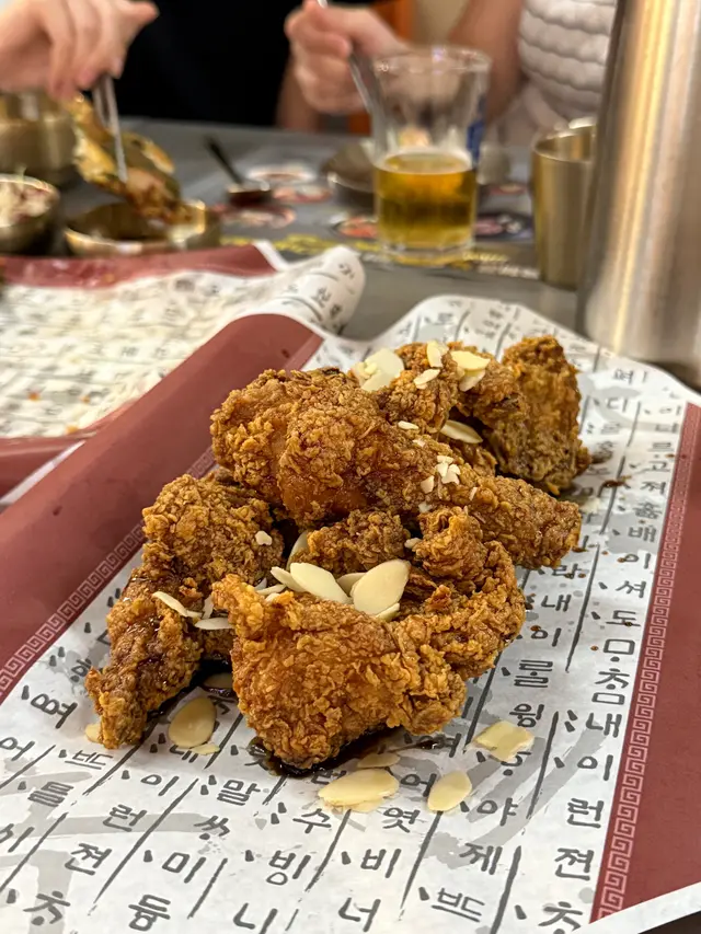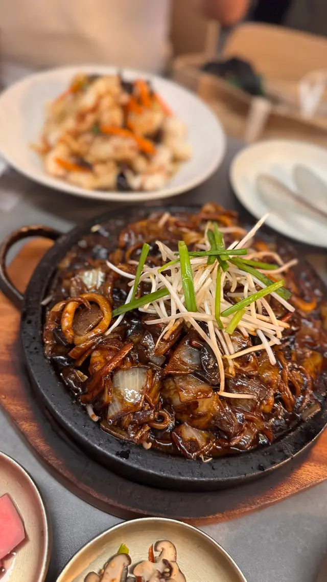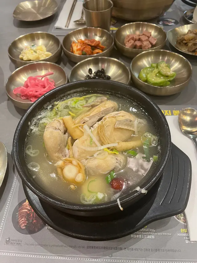 韓印紅除了超市業務外,原來還在尖沙咀開了一間韓式餐廳🇰🇷聽說是由韓國廚師主理,其食物質素令人期待🤓————————————————————————前菜共有六款,每款都開胃清新😋當中青瓜絲和薯仔絲就最得我心🥰加上可無限任添,值得一讚👍🏻雖名為炒雜菜🥗但實則是韓式炒粉絲🤣麻油香氣濃郁,配料豐富😋但相對上粉絲比例偏少🤏🏻而且略嫌油膩。芝士無論在味道還是拉絲效果方面都不太明顯😓蛋卷口感過熟,質素未如理想😥未能對得上其售價🧐紫蘇油香氣獨特😚紫蘇味道不算濃烈,即使是不喜歡紫蘇的朋友亦可接受👌🏻大量海苔增添香氣,麵質方面煙韌有咬口,整體令人滿足😋半半炸雞 $256雞件份量合理🐔炸得非常香脆,肉質算是嫩滑但肉汁欠奉🙊炸粉亦略為偏厚,味道方面非常香甜,但牛油味未算明顯🧐即使裹上醬汁,炸雞外皮依然香脆🥳配上蒜片更添風味,相比之下這款口味更合我心意🤩————————————————————————雖然這裡的食物質素只屬平平🙂但每晚的生日慶祝環節都會有職員載歌載舞🕺🏻氣氛十分熱鬧🔥如自認E人或想挑戰I人底線的話都可以前來體驗🤪…查看更多