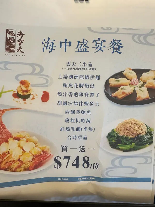 前几日同朋友去咗「海云天」试佢哋嘅2小时任食蒸海鲜,主打蒸蚝、鲍鱼同蟹脚。餐厅环境几好,座位宽敞,灯光柔和,坐得几舒服,适合一班人聚餐。服务都算唔错,店员有礼貌,上菜速度合理,唔会拖太耐。 食物方面,选择算系基本,有蚝、鲍鱼、蟹脚、蚬、虾等,但质素就一般。蒸蚝size中等,不过有部分唔够饱满,鲜味普通;鲍鱼细只,口感偏韧,唔算好鲜甜;蟹脚肉质尚可,但略嫌雪藏味重,唔够鲜美。其他配料如蔬菜同酱料就正常,无特别惊喜。 整体嚟讲,如果纯粹想食饱同试下任食蒸海鲜,可以一试,但对海鲜质素有要求嘅话就可能会失望。价钱中等,性价比算合理,不过未必会encore。 …查看更多