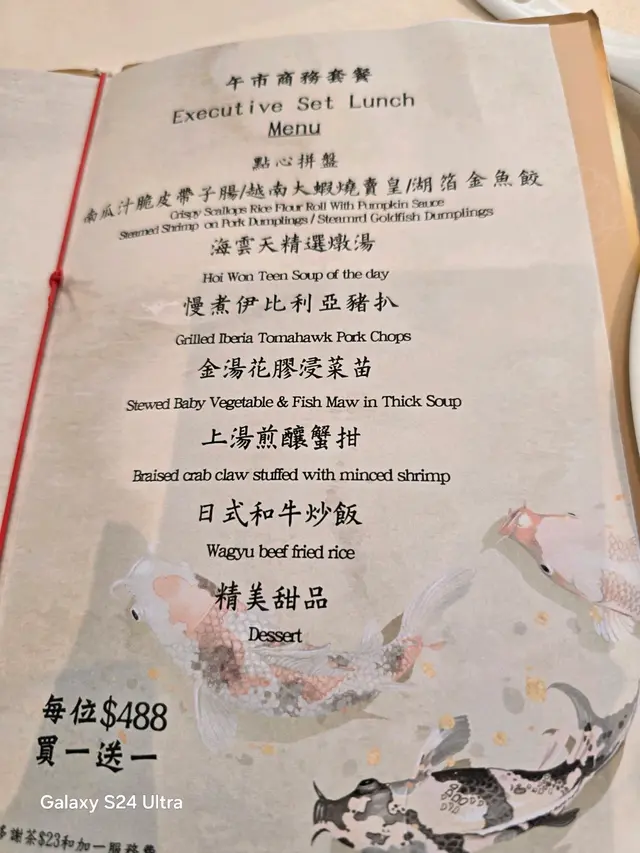 因为临近母亲节,所以带同家人一起去食,心想是洒店中餐部,会有一定水准,但一进去己经发觉中伏,坐低用qr code落单,看宣传有20多款食物选择,但落qr code部分只有十款左右,其余是外面自取,落单后食物一些十分钟来了,试食几款鹅肠,麻辣鸡,超细蒸鲍鱼等等,全是普通,什至可用难食形容,蒸蚝二十多分钟送来,不难食,可用不错形容,但需时很久才送来,其余食物,例如蟹脚(非常咸)白焯虾是莓的,其余也是可用垃圾食物来形容,唯可好食的是红荳沙及因为实在太难食,我家的嫲嫲面如灰黑,所以另外再叫一蝶鲍汁蚊伊面给她起,所以问女仕应取menu,但说没有,但可帮我们落单,那便下单(我们也有错,心想二百元之内)但埋单加埋一是三百元,最后总结是屋邨酒楼服务,食物仲衰过屋邨,我本人是没回内地消费的,所以明白为什么那样多港人不留港消费。。。。…查看更多