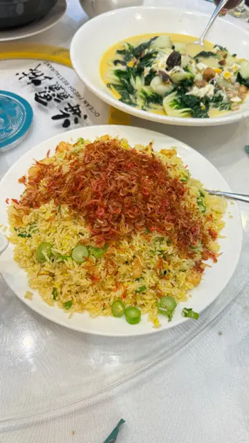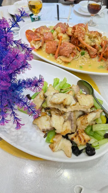 今天在海鱻城的聚餐,享受了一餐回味十足的晚餐。预订了的菜单中第一道菜是椒盐鲍鱼,谂唔到肉质十分柔软,椒盐嘅味道亦都好香,好少食到啲鲍鱼一啲都唔韧。第二道菜系鸡汤翅,侍应先将两大盘鱼翅放上枱打卡,然后即场用鸡汤煮番啲鱼翅,一人一碗热辣辣同埋劲大梳鱼翅,同去饮食𠮶啲浠溜溜冇得比。豉椒蛏子王,每条蛏子都有长又大又香,一人一只好似都唔够喉。有条唔知咩鱼两味,一味系西芹炒鱼球,另一味系啫啫鱼云,虽然唔知系咩鱼,但系肉质结实鲜甜,好好食。之后再上一碟超大碟龙虾伊面,龙虾应该好大只,龙虾肉劲大嚿,超新鲜又弹牙,芝士伊面底好好味,我食咗两三碗。重有烧鹅,块皮烧到脆卜卜,啲肉就实净啲,都好好味。樱花虾炒饭上面啲樱花虾超级无敌多,啲樱花虾只脆卜卜同埋好香,个炒饭好好食。最后仲有糖水紫米露同埋乳酸糕,乳酸糕个味系益力多味,紫米露唔甜,可惜一人得一碗完全唔够喉。…查看更多