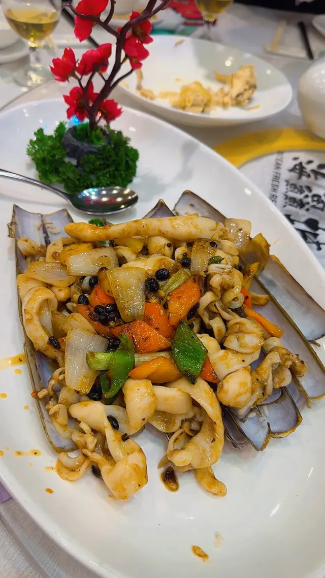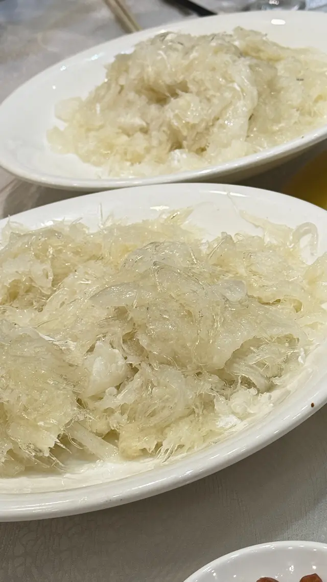 今天在海鱻城的聚餐,享受了一餐回味十足的晚餐。預訂了的菜單中第一道菜是椒鹽鮑魚,諗唔到肉質十分柔軟,椒鹽嘅味道亦都好香,好少食到啲鮑魚一啲都唔韌。第二道菜係雞湯翅,侍應先將兩大盤魚翅放上枱打卡,然後即場用雞湯煮番啲魚翅,一人一碗熱辣辣同埋勁大梳魚翅,同去飲食嗰啲浠溜溜冇得比。豉椒蟶子王,每條蟶子都有長又大又香,一人一隻好似都唔夠喉。有條唔知咩魚兩味,一味係西芹炒魚球,另一味係啫啫魚雲,雖然唔知係咩魚,但係肉質結實鮮甜,好好食。之後再上一碟超大碟龍蝦伊麵,龍蝦應該好大隻,龍蝦肉勁大嚿,超新鮮又彈牙,芝士伊麵底好好味,我食咗兩三碗。重有燒鵝,塊皮燒到脆卜卜,啲肉就實淨啲,都好好味。櫻花蝦炒飯上面啲櫻花蝦超級無敵多,啲櫻花蝦隻脆卜卜同埋好香,個炒飯好好食。最後仲有糖水紫米露同埋乳酸糕,乳酸糕個味係益力多味,紫米露唔甜,可惜一人得一碗完全唔夠喉。ดูเพิ่มเติม