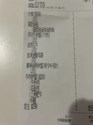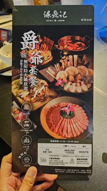 对上一次光顾渌鼎记,都已是几年前在观塘分店,那次觉得酸菜鱼很好吃,单吃酸菜鱼就差不多饱到吃不下火锅了!今次和亲戚食生日饭,选在旺角创兴广场店,8位以上成人消费,可享「寿星免费」优惠。book了7:00pm,没有时限,可以直落到10:30pm的闭店时间。星期五六日及假期贵$10,每位$388的「爵爷套餐」,主菜6选1,我们人多可选两款,分别是老坛酸菜鱼及原味椰子鸡。主菜是不能追加的,只有一份。这次吃到的酸菜鱼,感觉好普通,不及对上一次在观塘店试过的好吃。一来份量少了,二来不够麻,没有那种食到嘴唇震的过瘾。先试一口汤,汤底味道的酸度一般。配料有鱼片﹑酸菜﹑芽菜﹑莴笋﹑莲藕及宽粉。鱼片份量还可,每人吃到2-3片左右。鱼肉不算厚身,但都算嫩滑。宽粉质感爽滑、莴笋及莲藕够爽脆,辣度不高。原味椰子鸡的椰子汤底清甜,鸡件份量充足,又不会有雪味。豪华时令刺身,同样是不能追加的项目,有赤虾﹑带子﹑三文鱼﹑鲍鱼及鲷鱼。赤虾爽口又鲜甜,带子嫩滑味甜,鲷鱼清甜。紧接下来还有火锅!有6款火锅汤底可选,来个滋养一点的花胶美人锅及浓郁的龙虾头海皇海鲜锅。店员送来一客豪华海鲜拼盘及一份顶级手切牛拼盘,同样的,这两款食品都自此一round。海鲜拼盘有虾﹑扇贝﹑刀贝﹑鲍鱼及蚬,所有贝类都甜而无沙。手切牛的份量适中,每人都可吃到数片,肉味香浓又有嚼劲。最后就是其他可以任食的火锅配料,手打丸类细细粒,口感软滑。推介广岛蚝,肥美肉厚又够蚝味。喜欢清淡一点的可放在花胶美人锅灼熟,放在海鲜锅汤底则更突显蚝的鲜甜味。渌鼎记的饮品雪柜,除了有纸包、罐装、胶樽装饮品外,还有各款一jar jar的健康饮品。虽然对酸菜鱼的质素退步有点失望,但整体的火锅配料质素还是可以的。而且无限时可让长辈们慢慢吃,不用太赶急。…查看更多