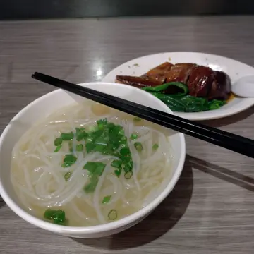 每次经过都比陈记烧鹅的大名吸引,今天终于来到一试。这店空间较少,只占商场的小小位置,地下又是非常滑,要慢慢找个位置坐。来这里当然就是试烧鹅啦,点了烧鹅濑粉+冻饮$60,若果是有质素的烧鹅,这个价钱是很合理。一来到卖相还不错,但夹起一件就知已中伏一半。份量还可以,但那只鹅近乎没有肉,只有皮,真正的皮包骨。第一次吃这种没有肉,只有皮的鹅,很惊讶一间食店招牌菜是烧鹅,但只卖这种吓人的级数。皮烧得有点脆,但食落很咸。这些质素的烧鹅一次都不应帮衬。…查看更多