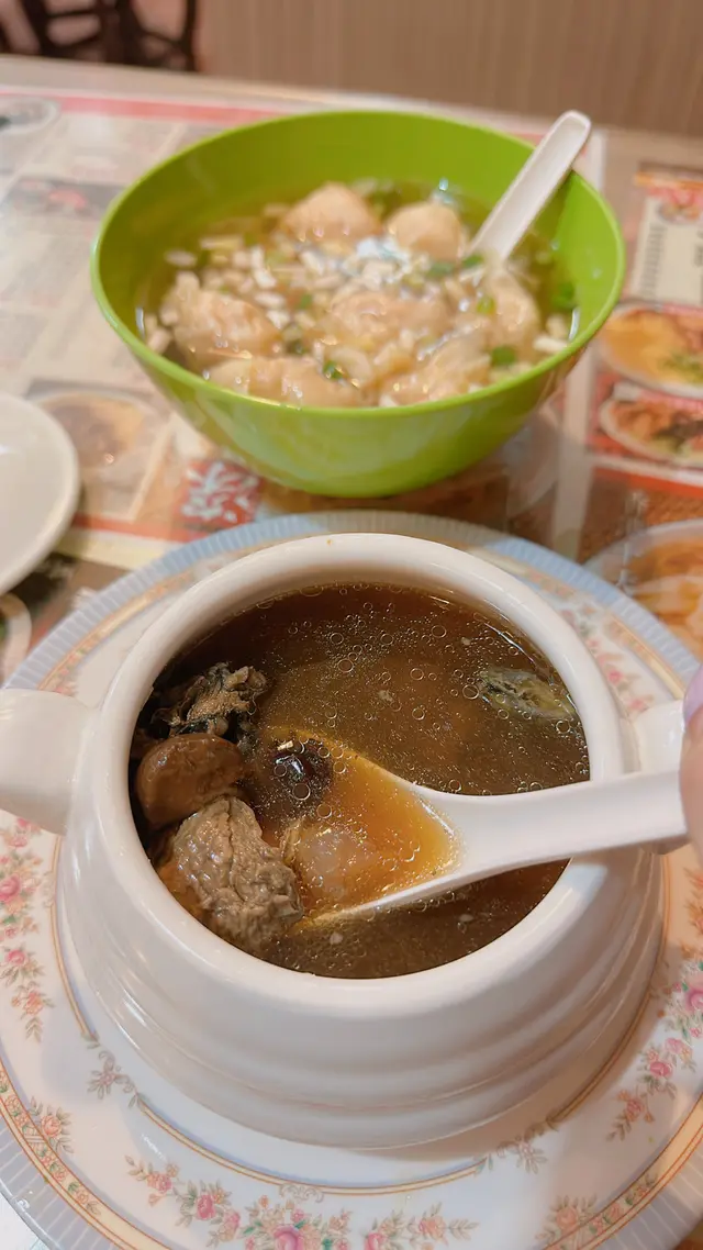 🥟 淨雲吞 $34/8粒啲蝦好鮮好彈牙,佢真係粒粒蝦肉原粒夾入去,好爽好有口感,成粒啪落口好爽,不過係咸左啲啲,皮又薄又滑🐦‍⬛ 黑金蒜燉竹絲雞 $38唔知咩係黑金蒜,嗌黎試下,完全唔係蒜頭嘅味道,個湯滋潤,落到喉嚨都好清甜,湯渣都唔會比太多搞到無湯飲,啲瘦肉吸哂啲黑蒜味,睇黎真係煲左好耐查看更多