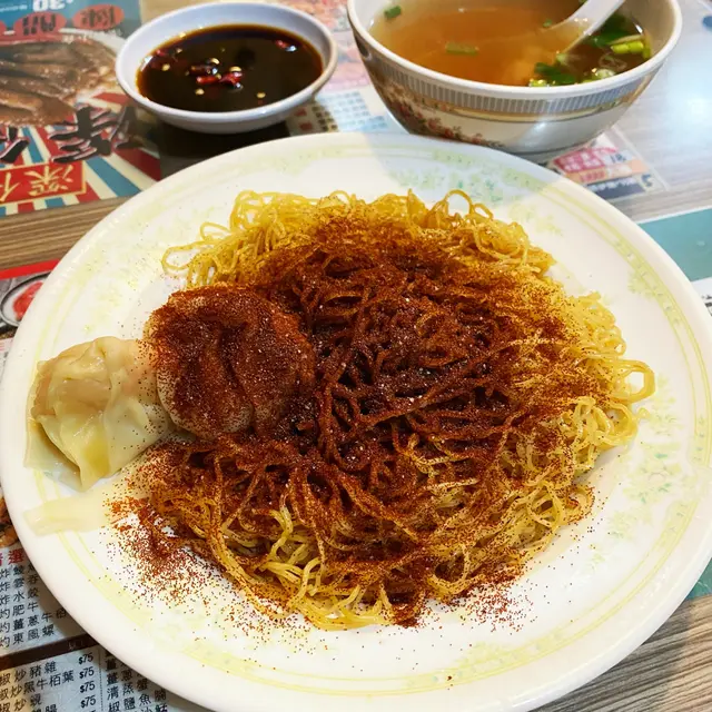 今日做完嘢好肚餓,行經油麻地發現一間10點後仍然開嘅茶餐廳,諗住求其醫下肚就算。我點咗一個酥炸雲吞同薑蔥撈麵,點知一咬落去,個酥炸雲吞一食尤如上咗太空,外脆內軟再加埋啲酸酸甜甜嘅醬,啲蝦都算新鮮,蝦蝦咪有彈性,簡直係宵夜首選。❤️❤️❤️反而,薑蔥撈麵都ok, 姜有薑味, 蔥有蔥味,麵就冇乜鹼水味,正正常常。見到隔籬位啲人食菜,啲菜都新鮮嫩綠,好似值得一試咁。我會要有下次,我會想試吓雲吞麵同埋啲正菜❤️❤️❤️查看更多