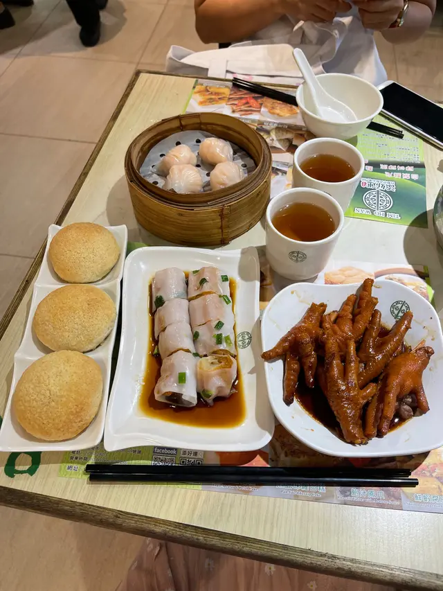 夜晚八點半左右入座,冇乜客。三個人叫咗八樣野加茶位,食咗大約$230。(3⭐️好食要試 ; 2⭐️正常 ; 1⭐️一般)🥢酥皮焗叉燒包⭐️⭐️⭐️個味幾好食,但唔夠熱,酥皮有啲淋。(似係放咗好耐再去蒸一蒸果d口感🙈)🥢蛋煎糯米飯⭐️好普通,偏淡,就係蛋包住d冇乜味同料嘅糯米飯😅。🥢叉燒腸粉 ⭐️⭐️🥢豉汁鳳爪⭐️⭐️🥢蝦餃⭐️⭐️🥢蝦燒賣⭐️⭐️⭐️👍🏽👍🏼👍🏻蝦料都好足,爽口。🥢韭菜餅⭐️⭐️🥢南乳炆齋 ⭐️⭐️?d菜嘅口感都正常,個味就係酸酸地🧐(之前未食過呢個菜式,唔係好知個味係點嘅)查看更多